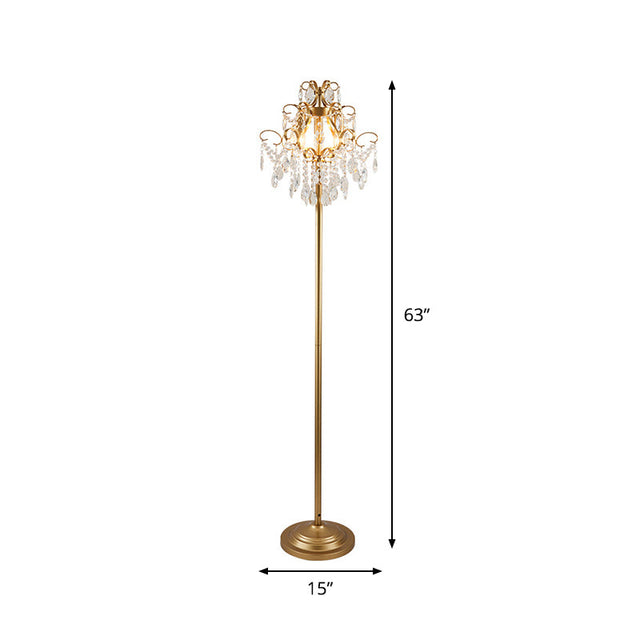 Gold Spiral Arm Floor Lighting Classic Metal 3 Heads Living Room Standing Lamp with Faceted Crystal Droplet