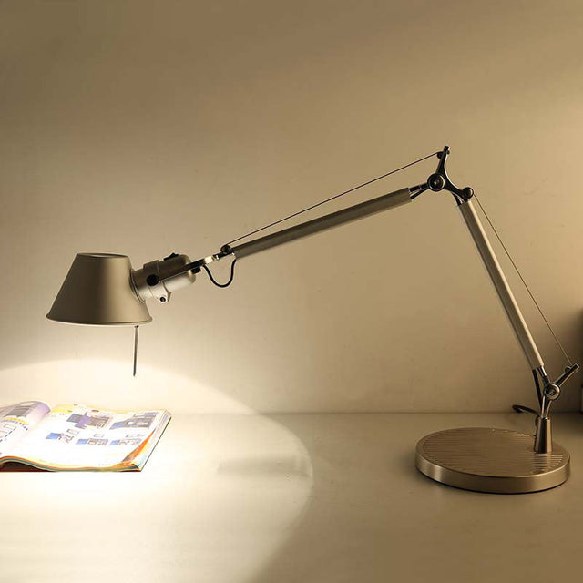 Industrial Telescopic Table Lamp 1-Light Metal Reading Book Light with Tapered Shade in Silver