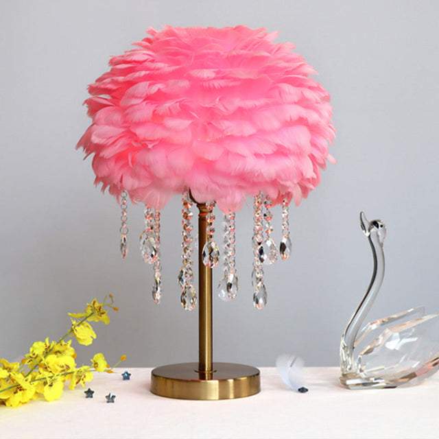 Modern Romantic Domed Table Lamp Feather 1-Light Bedside Night Light with Crystal Decor