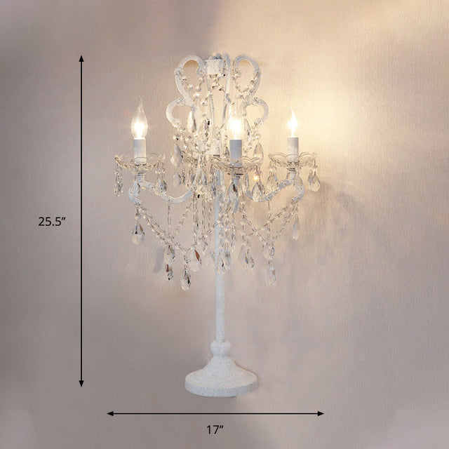 Rustic Candelabra Night Lamp 4 Lights Metal Nightstand Light in White with K9 Crystal Strand