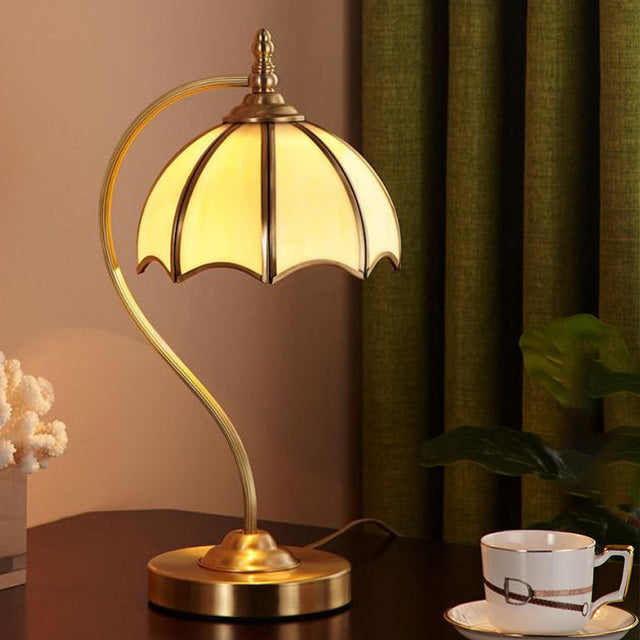 Simplicity Umbrella Shaped Table Lamp 1 Head Frosted Glass Night Lighting with Gooseneck Arm in Brass