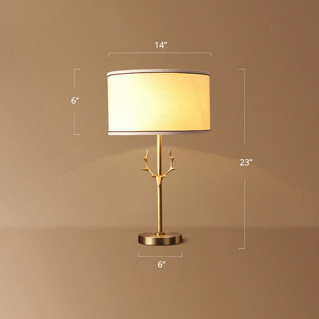 White Round Table Light Minimalist 1 Head Fabric Night Lamp with Antler Decoration