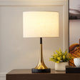 White Shaded Table Lamp Simplicity 1-Light Fabric Night Stand Light with Brass-Black Base
