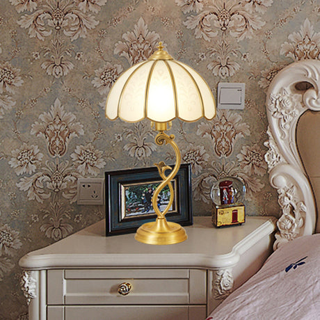 $520.09 USD$896.71Unit price /UnavailableSingle Umbrella Shaped Table Light Traditional Brass Cream Glass Nightstand Lamp