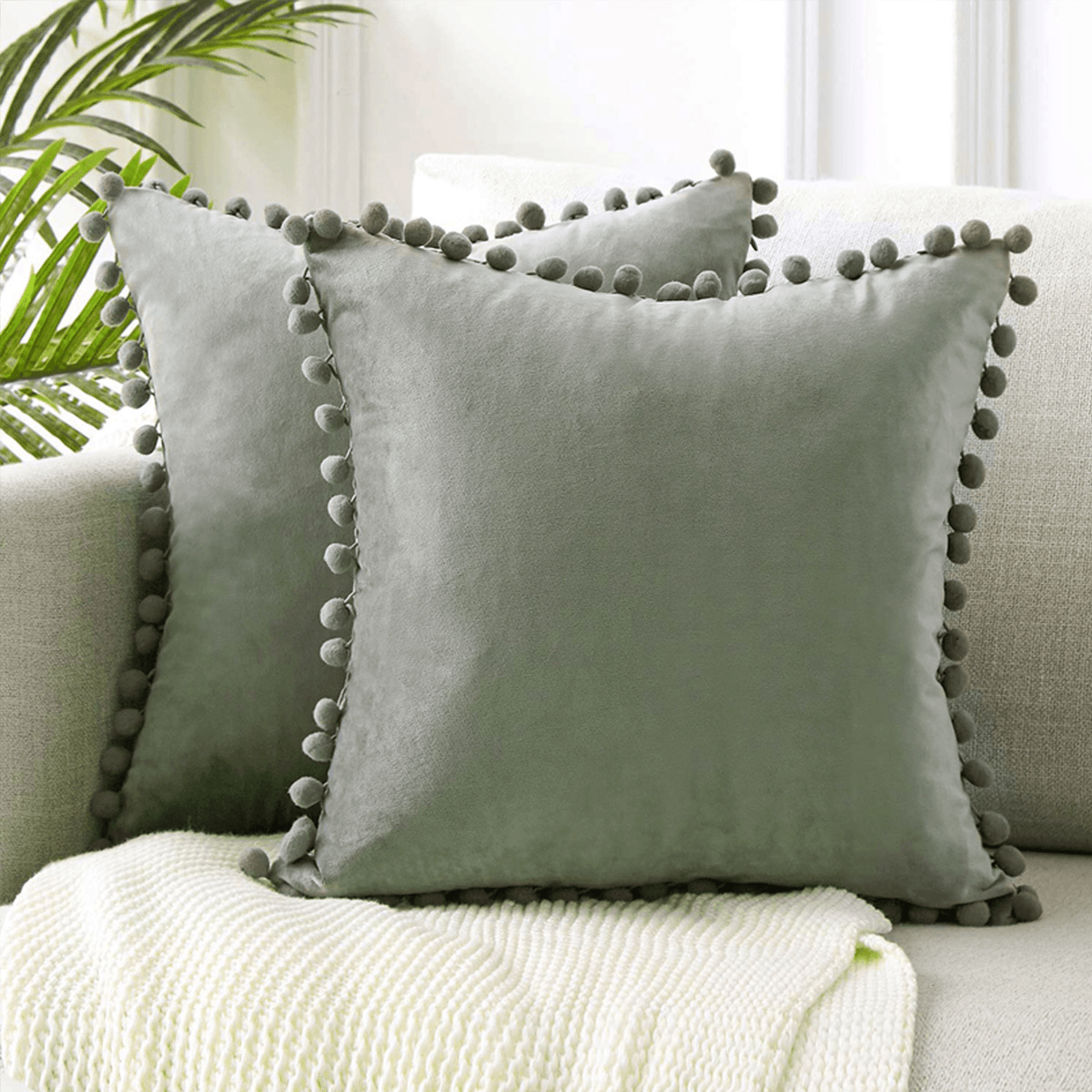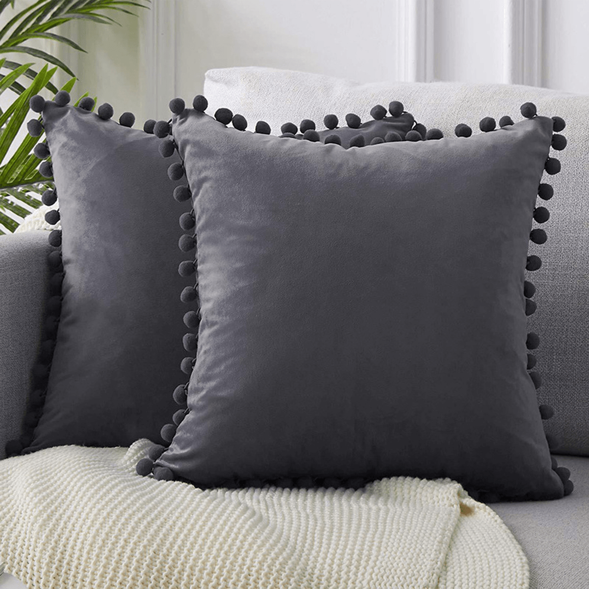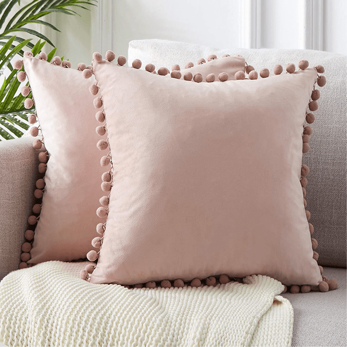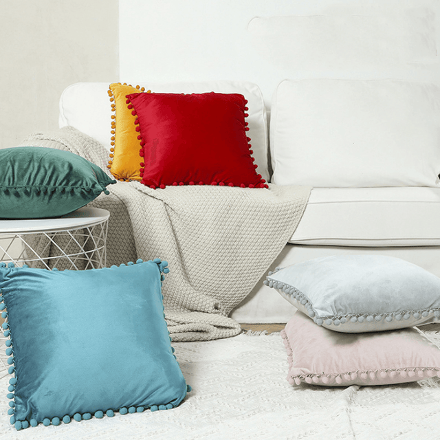 45*45Cm Soft Velvet Pillow Covers Cute Pom Poms Throw Pillow Covers Square Cushion Case for Sofa Couch Home Decor