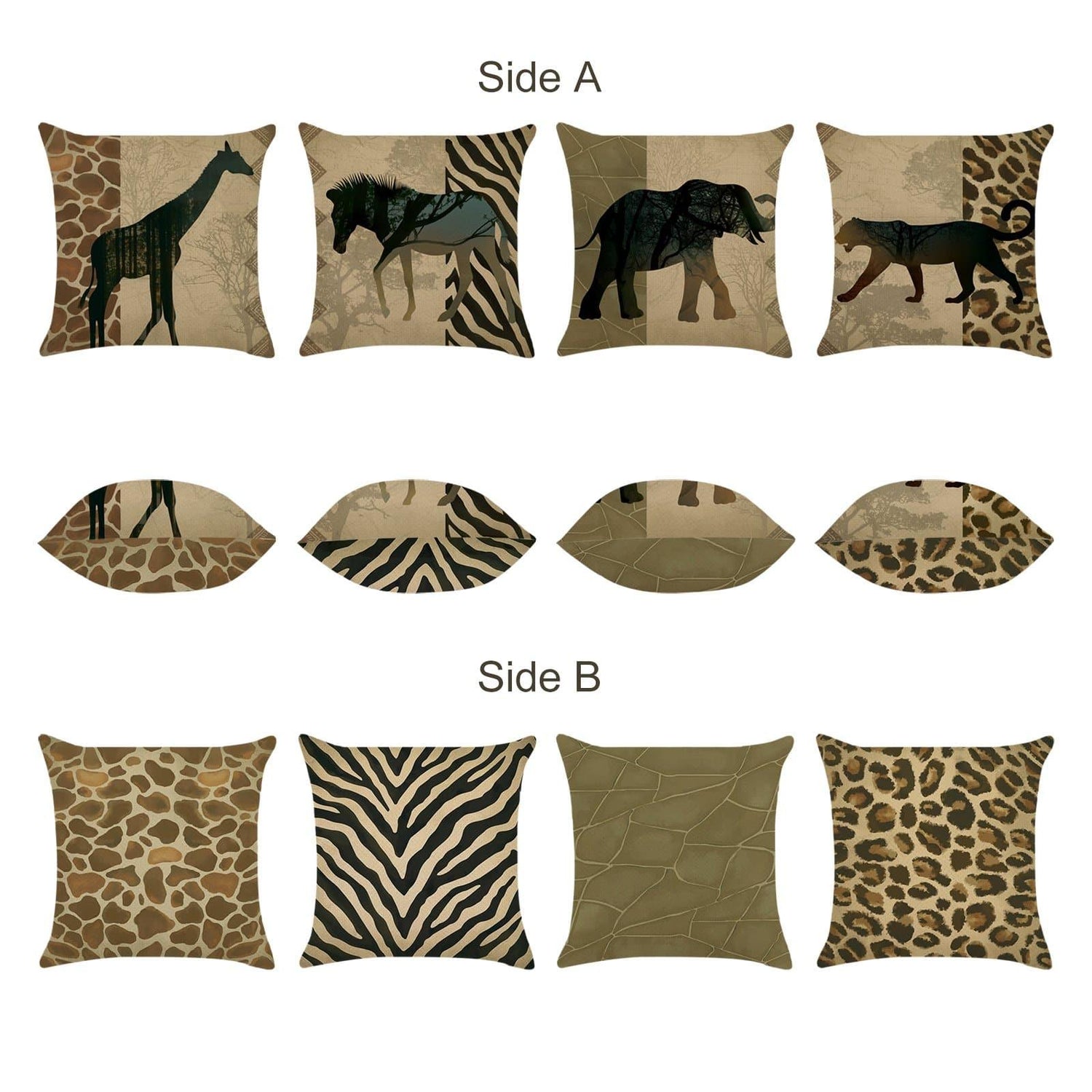 Two Sides Design: The front pattern of the african animals pillow covers is shown as picture; Back is leopard and zebra pattern design.