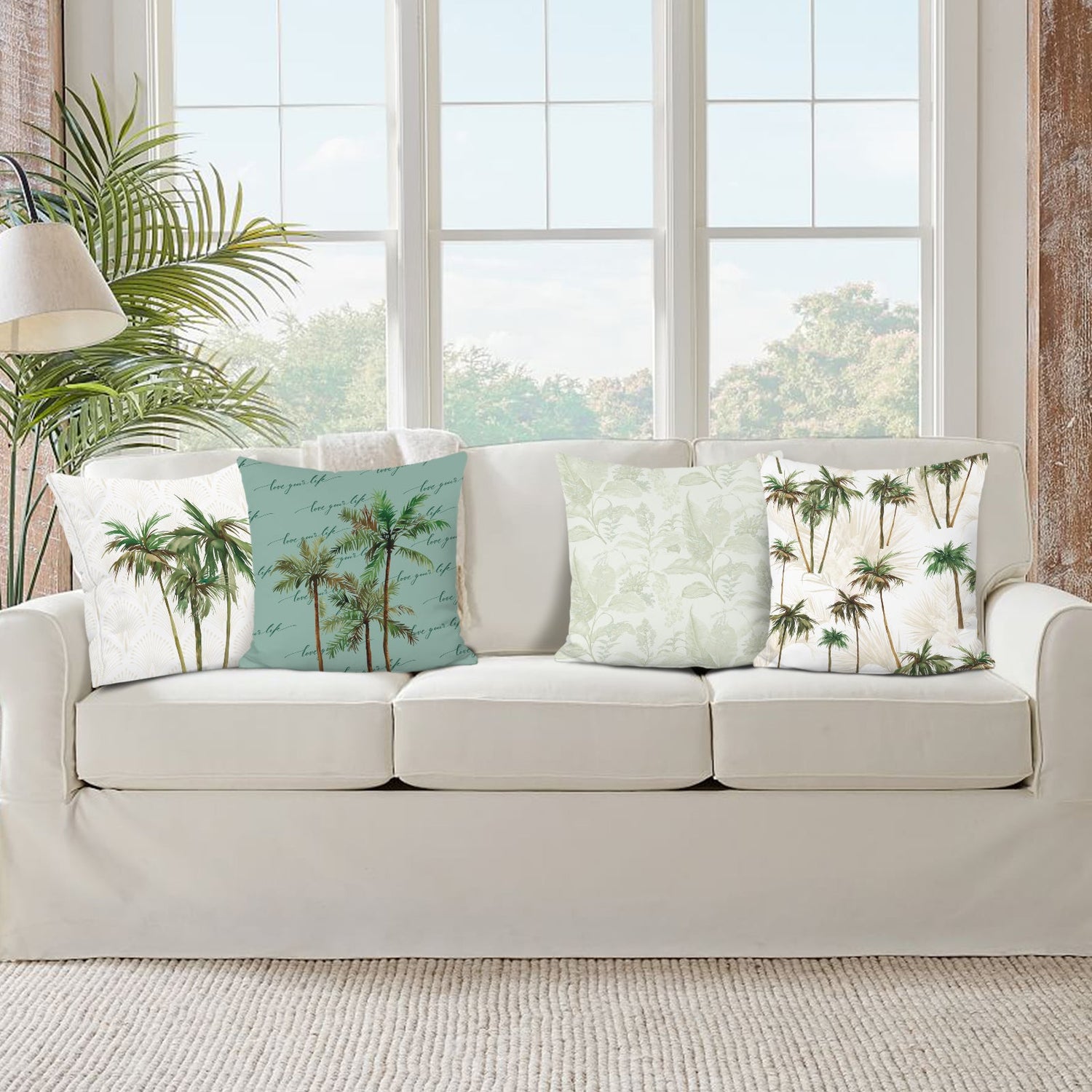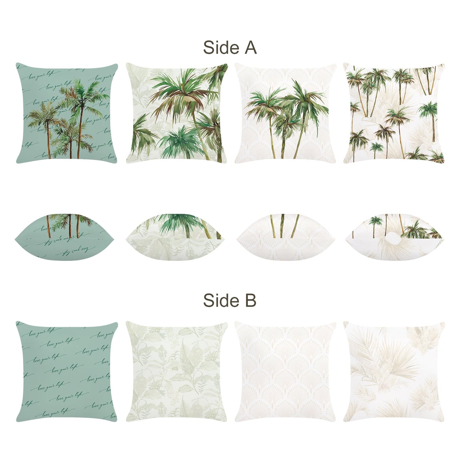 Two Sides Design: The front pattern of the palm tree pillow covers is shown as picture; Back is 4 different silhouette patterns design.