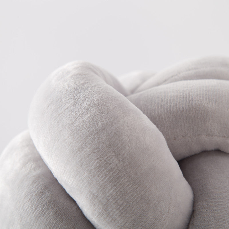 Geometric knot cushion measuring 18 cm in diameter, made of cotton with internal memory foam.