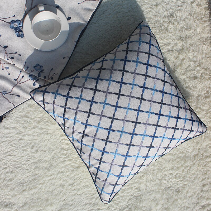 Cushion Cover Decorative Pillow Case Simple Chinese Geometric Embroidery Blue Coussin Modern Home Office Sofa Deco