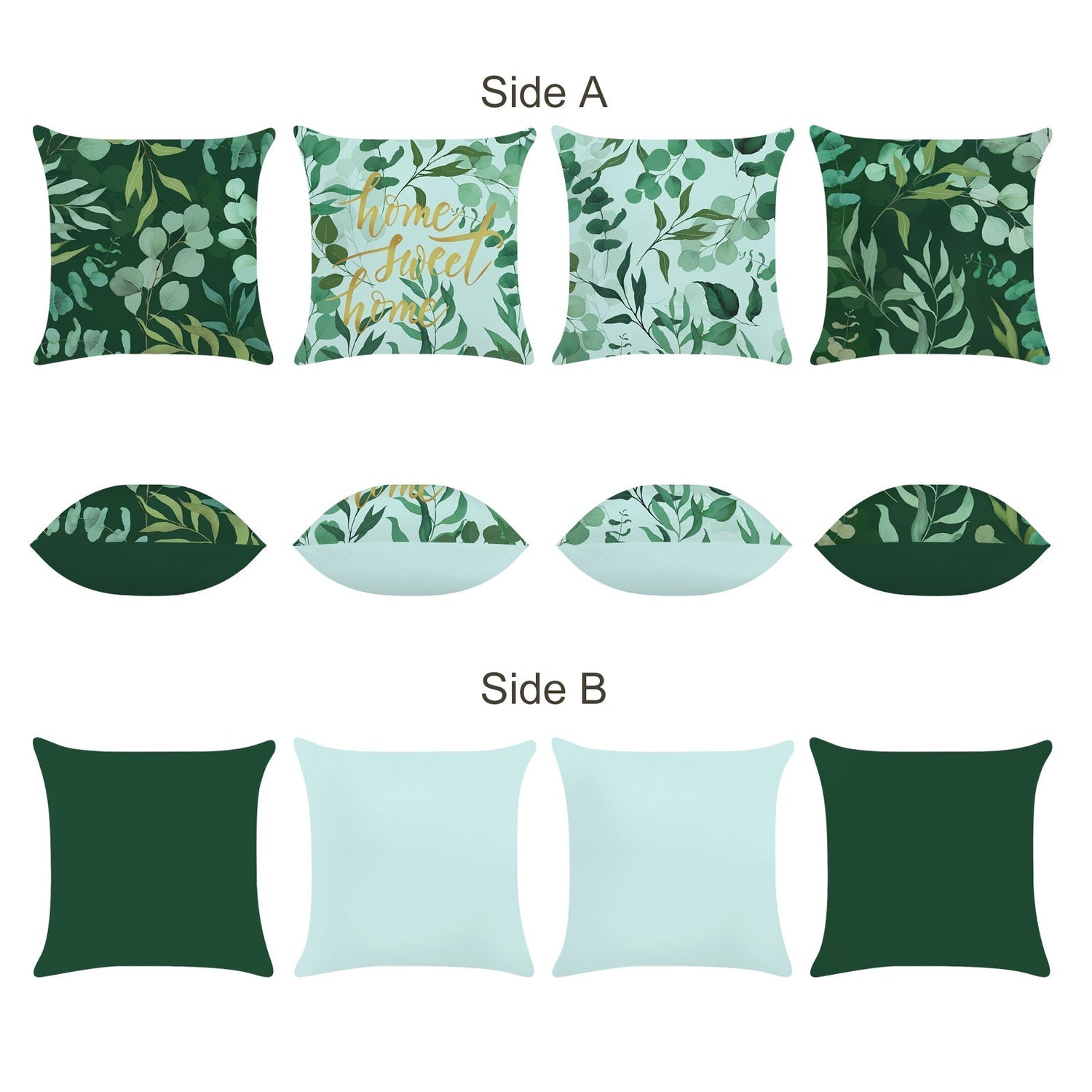 Two Sides Design: The front pattern of the eucalyptus leaves pillow covers is shown as picture; Back is 2 different green colors.