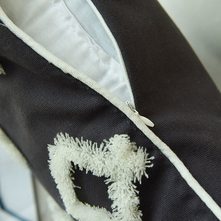 Enjoy the modern look and feel of these textured pilow covers. The black and the bright peacock blue complement each other. The tufted white patterns gives these pillow covers an inviting and modern feel. The pillow covers come in different designs and patterns that can be grouped together to create a stylish look in any space.