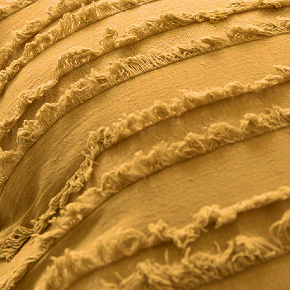 Enjoy the comfort of these textured pillow covers with their whimsical poms poms. A great pillow to curl up with by the fireplace. The pillow covers feature ruffled stripes to give the design more depth. There's no doubt that this pillow cover any space feel comfortable and stylish.