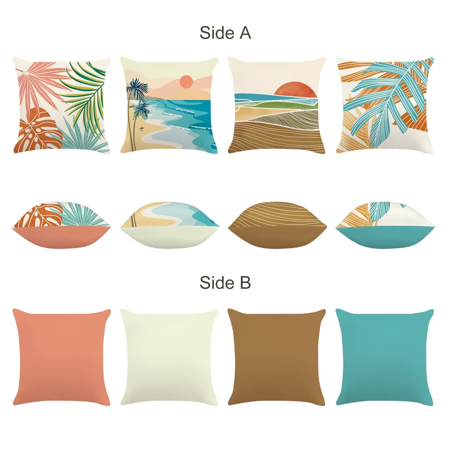 Two Sides Design: The front pattern of the modern tropical leaves pillow covers is shown as picture; Back is pink, cream beige, brown, blue solid color design.