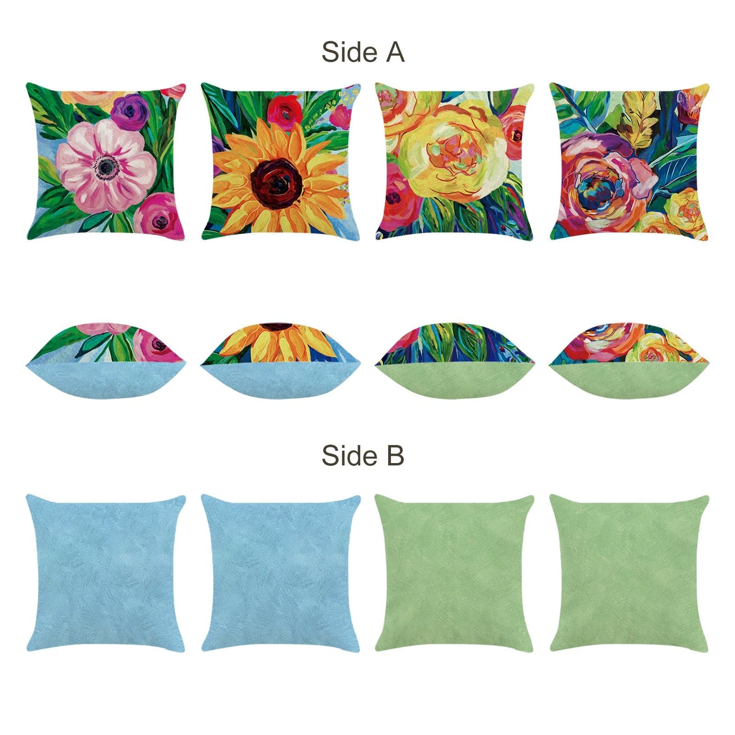 Two Sides Design: The front pattern of the oil painting flower pillow covers is shown as picture; Back is green color and blue color.