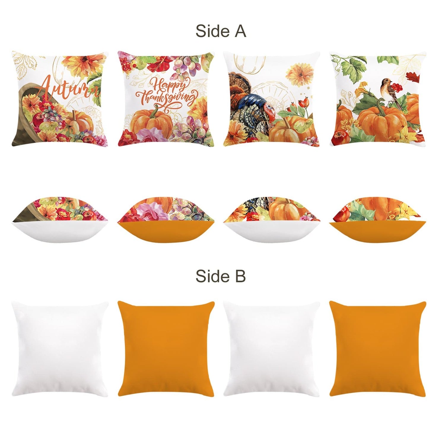 Both Sides Print: Front pumpkin pattern shown in the picture; Back is orange color.