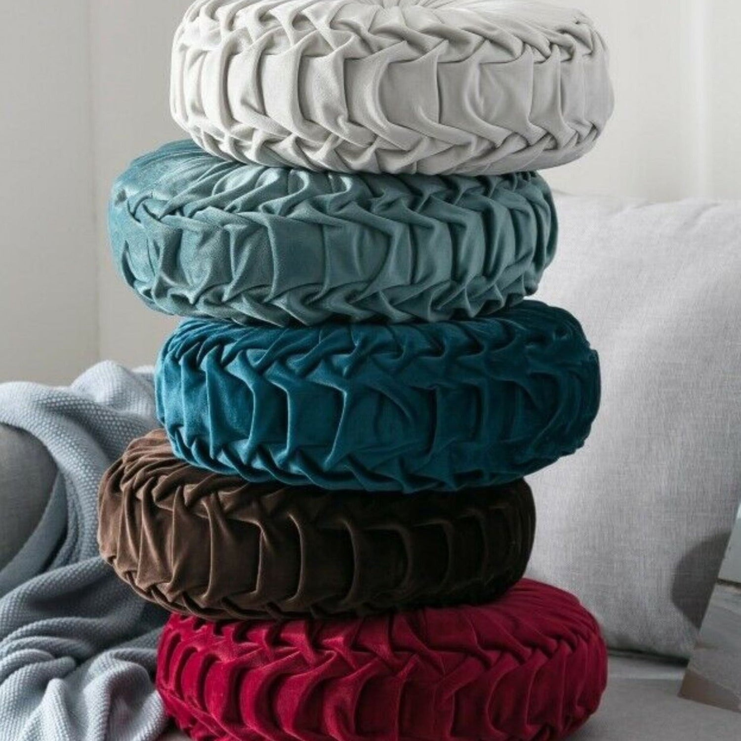 Surround yourself in luxury with this pleated velvet pouf. The detailed pleating throughout the pillow gives it a look of modern elegance. Embrace the luxury of this pillow alone or with other pillows for a romatic look in any space.