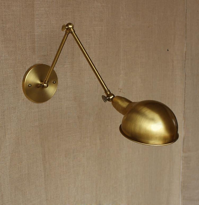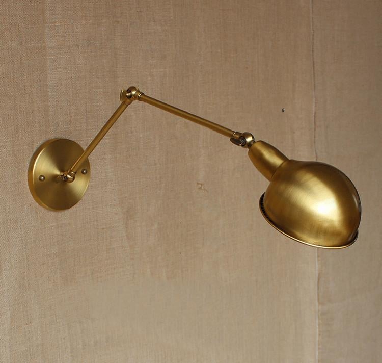 This vintage-inspired long arm wall light is the ideal complement to instantly add character. Arm is fully articulated. Made with high quality polished brass to accomodate an E27 bulb. Great for creating a warm, inviting atmosphere in restaurants, cafes, hotels or simply at home. The subtle glow of a tungsten filament bulb creates an ambiance that sets a welcoming mood for any classic interior.