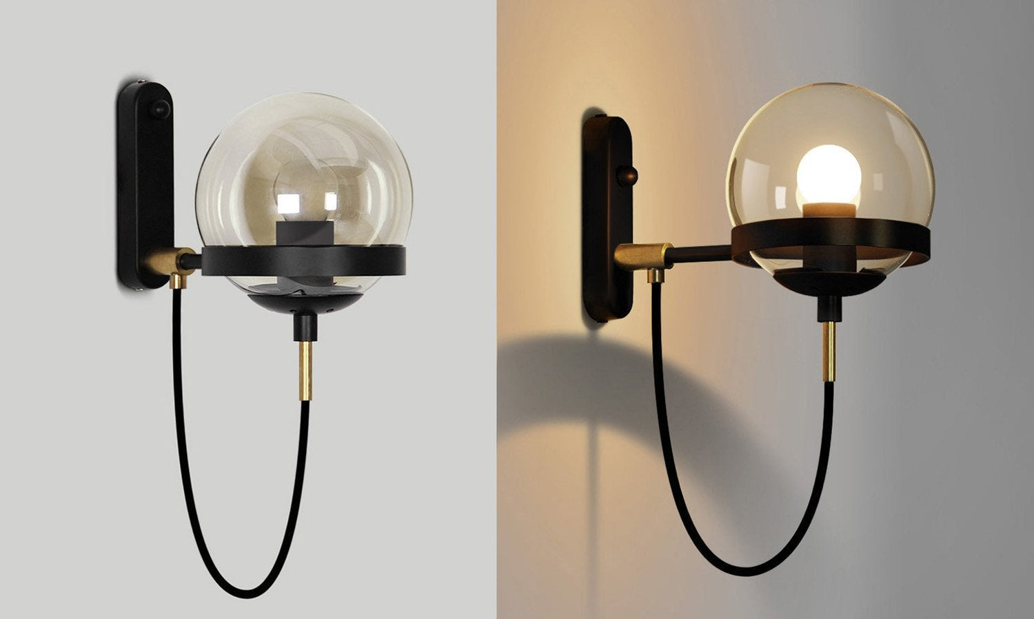 This wall light features a unique glass orb on a ring. The design alludes a minimalist art deco elegance that is sure to be a outstanding statement piece in your space.