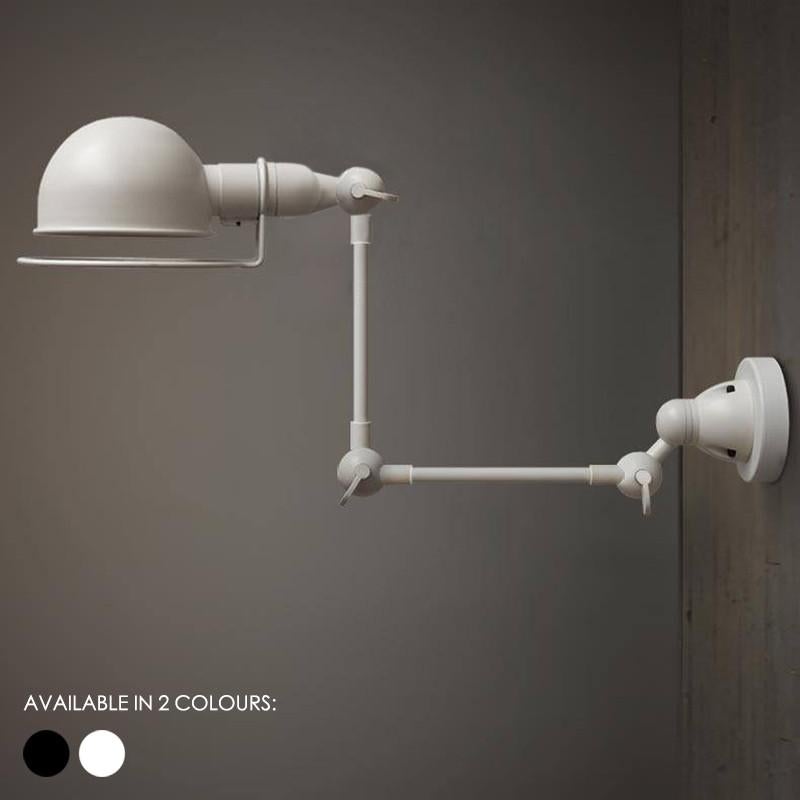One of the family of Fotis wall sconce light. Designed with the classic industrial era in mind but with modern design element like the new clean sleek lines. A marriage between the retro vintage style and the new contemporary style. Comes in three different sizes and many colours. Three sections of articulating arms to easily adjust the light.