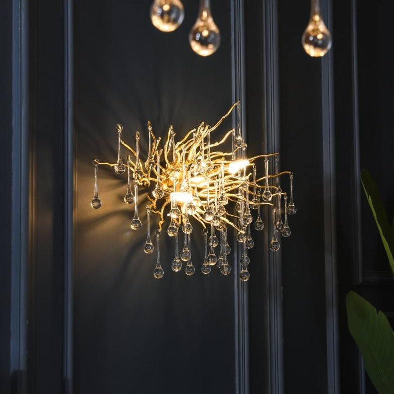 Luxurious crystal wall chandelier. Unique drop shaped crystal lighting to match our grande Ooze chandelier.