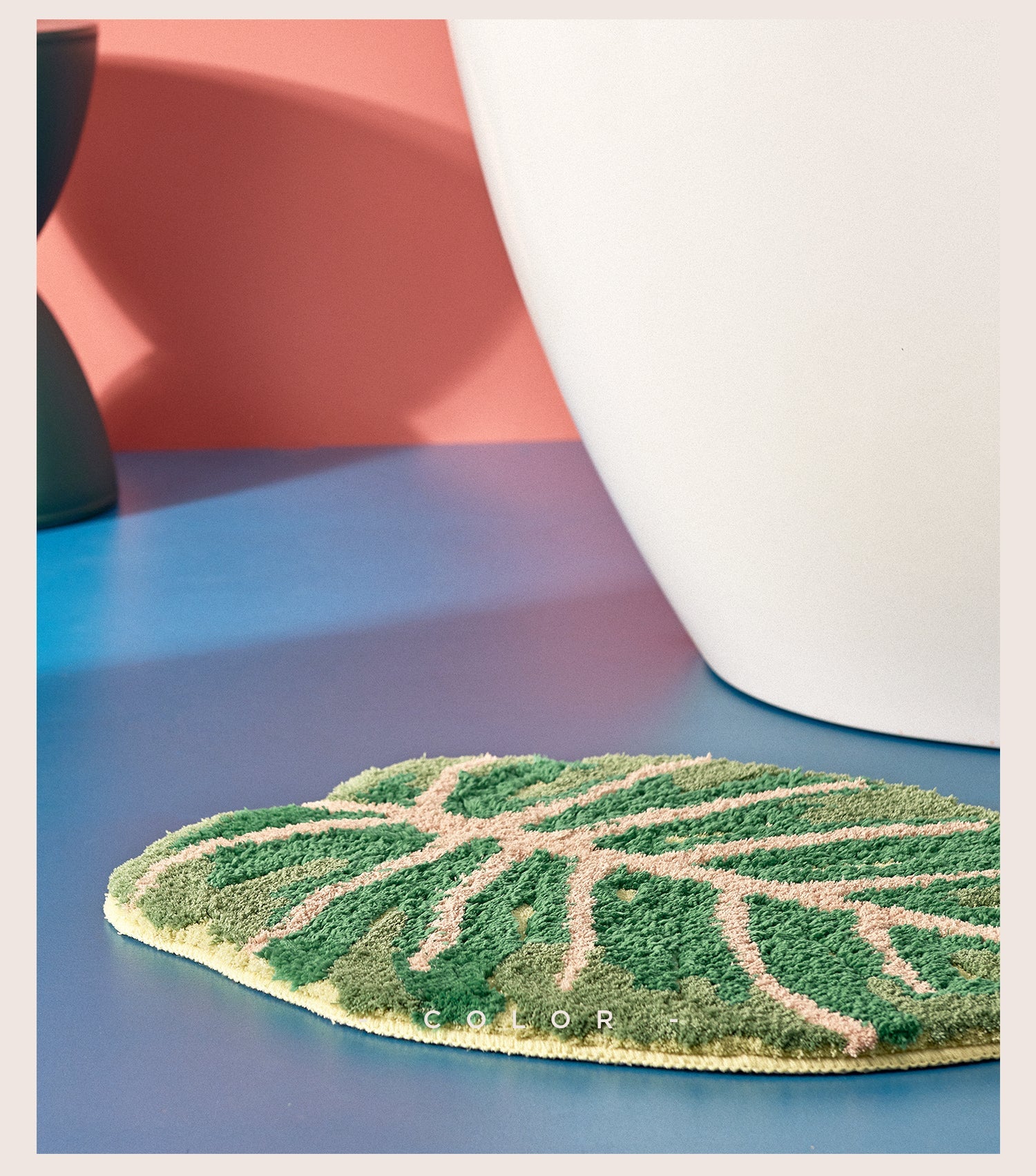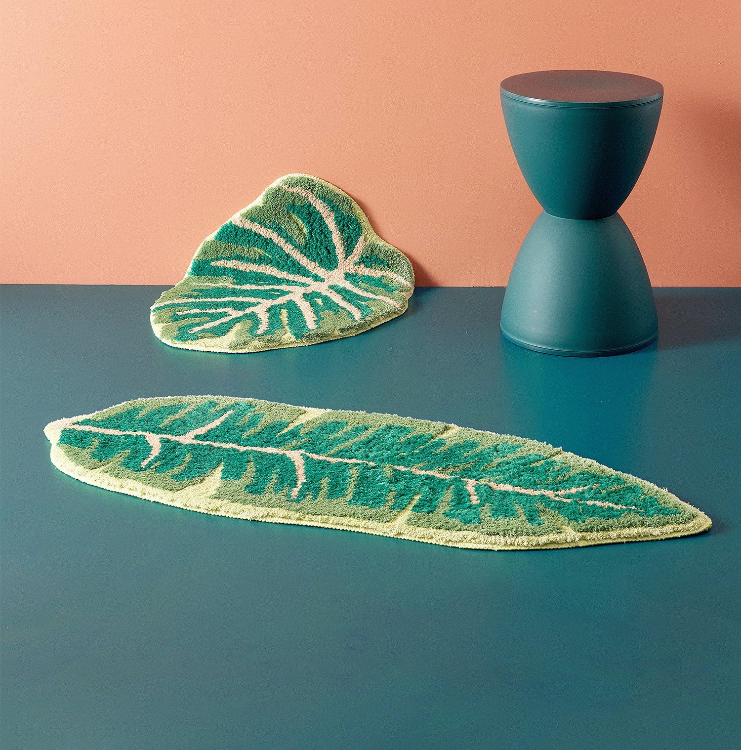 Tufting Leaf Bath Mat, Cute Green Bathroom Rug, Plants Bathroom Rugs, Gift for Nature Lover