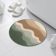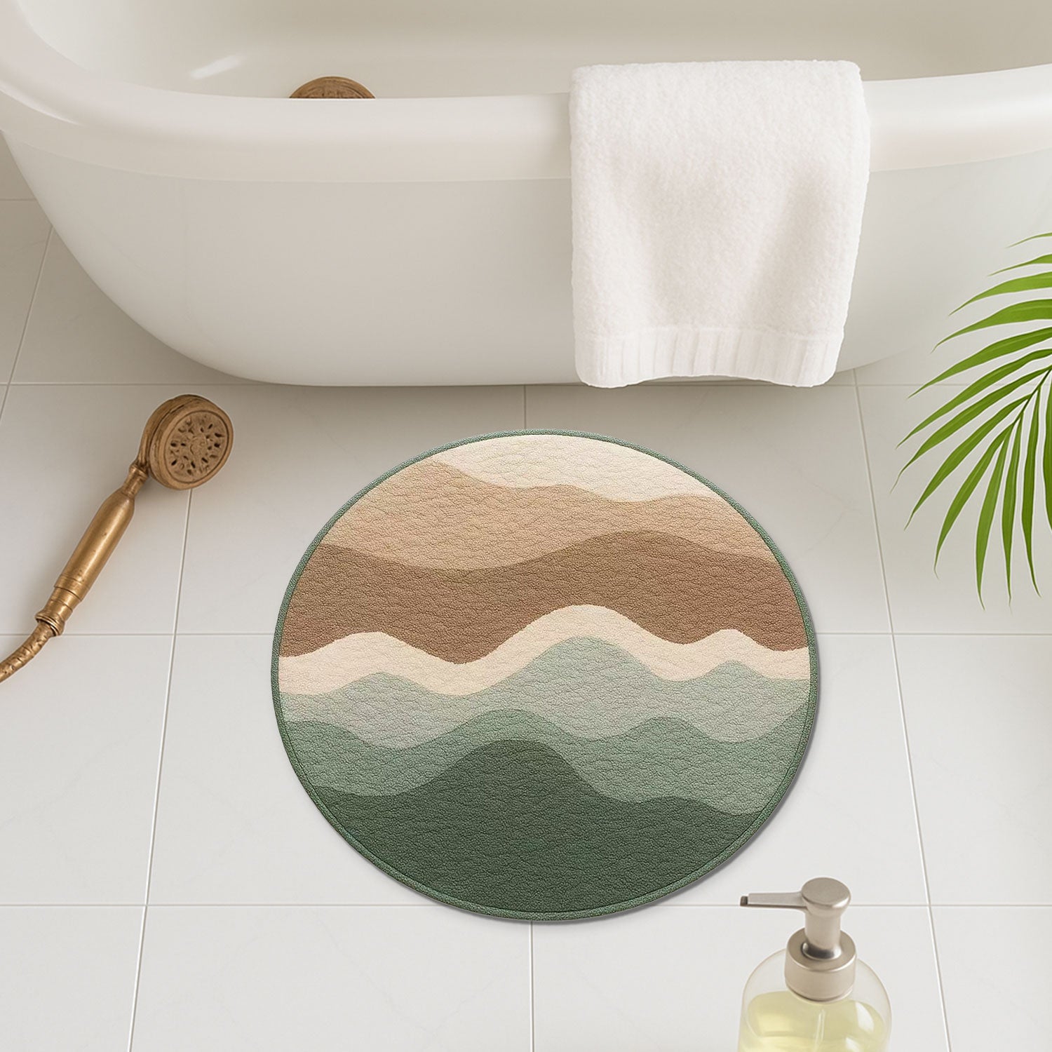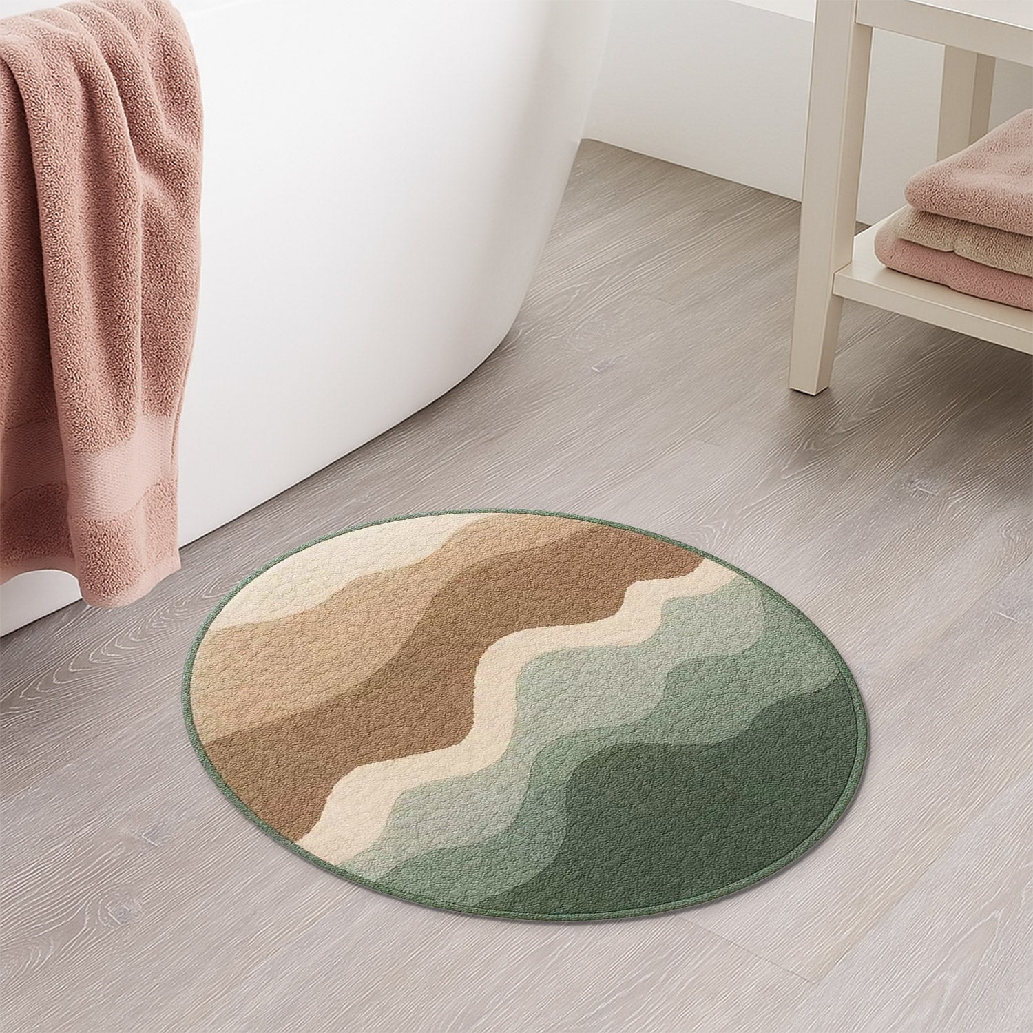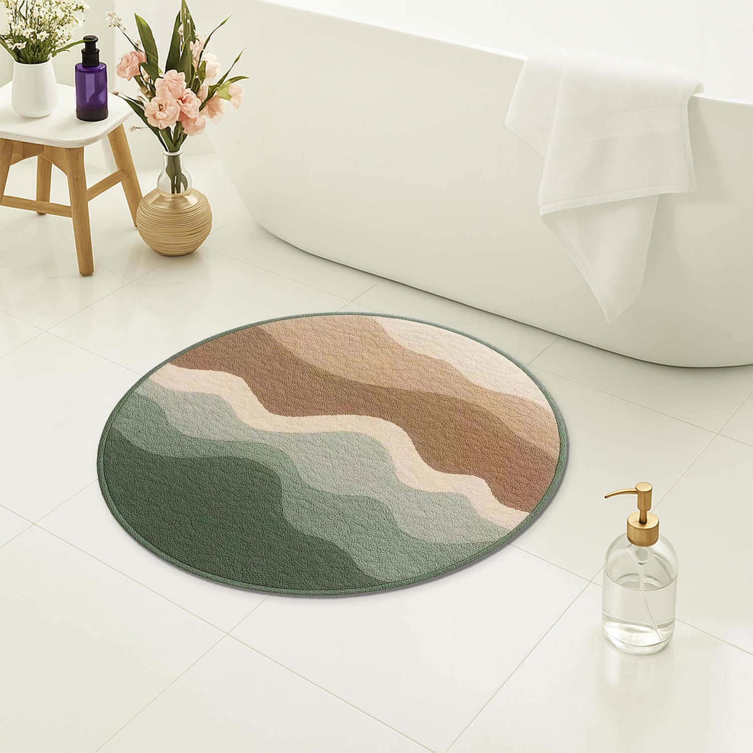 Earth Tone Round Bath Mat – Minimalist Wavy Pattern Rug for Bathroom & Entryway