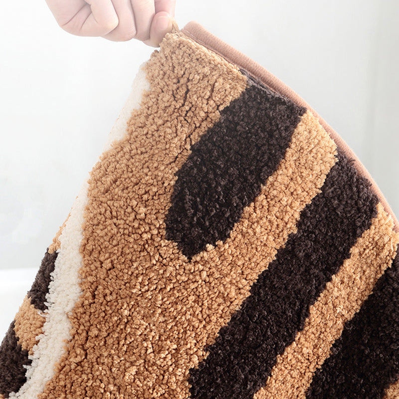 The bath mat is made of heavy-density yarn. Thick and fluffy contact surface offers exceptional comfortable feels to help soothe tired feet, and is super absorbent that helps save your floors from dripping water while you were stepping out of the bath, shower, or getting ready by the sink.