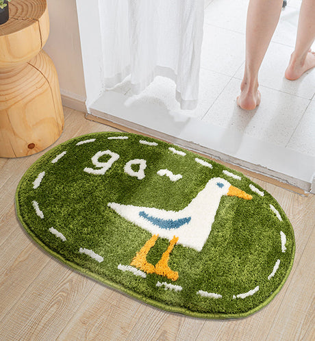 Cute Little Duck Bath Mat, Green Bathroom Rug, Water-Absorbent Mat for Bath Shower, Cute Bedroom Mat
