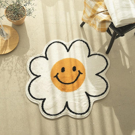 White Flower with Blue Ground Bath Mat