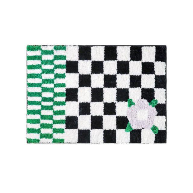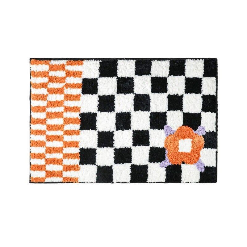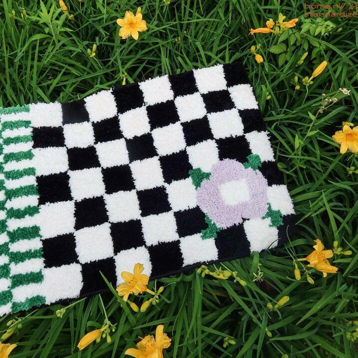 This cute checkered print with little flower fluffy accent rug is made of thick polyester fiber so it is really comfy to step on. Perfect for decorating your indie or danish pastel aesthetic room.