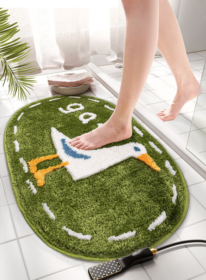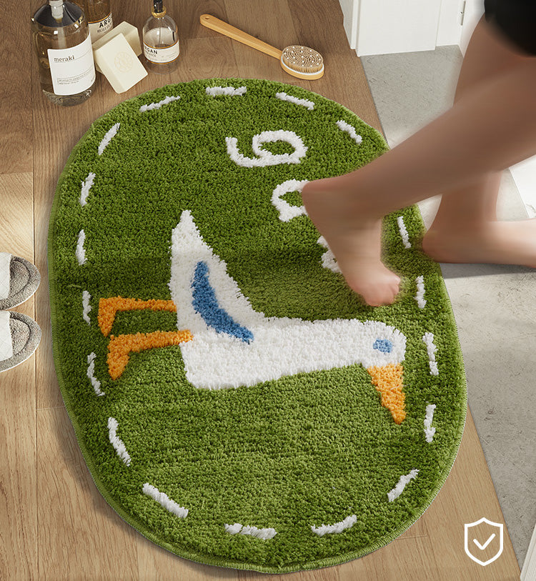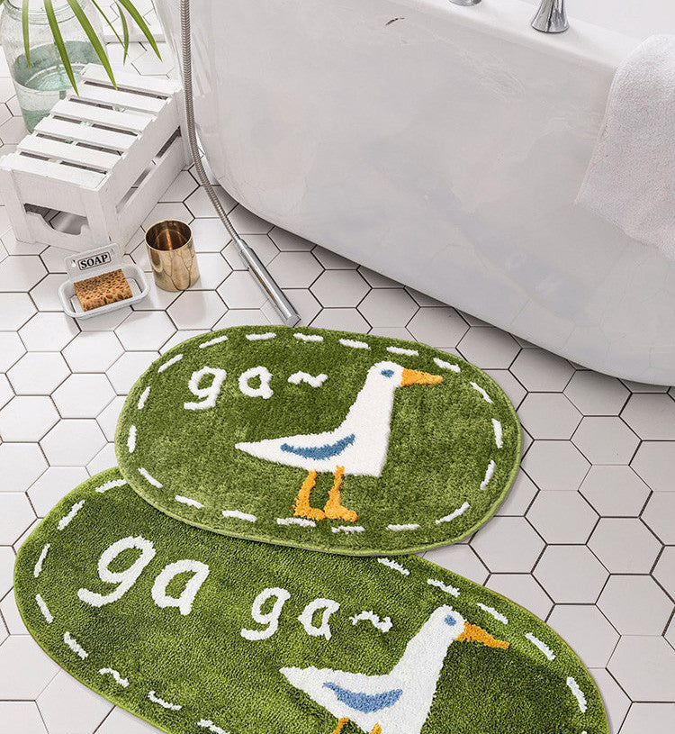 Cute Little Duck Bath Mat, Green Bathroom Rug, Water-Absorbent Mat for Bath Shower, Cute Bedroom Mat