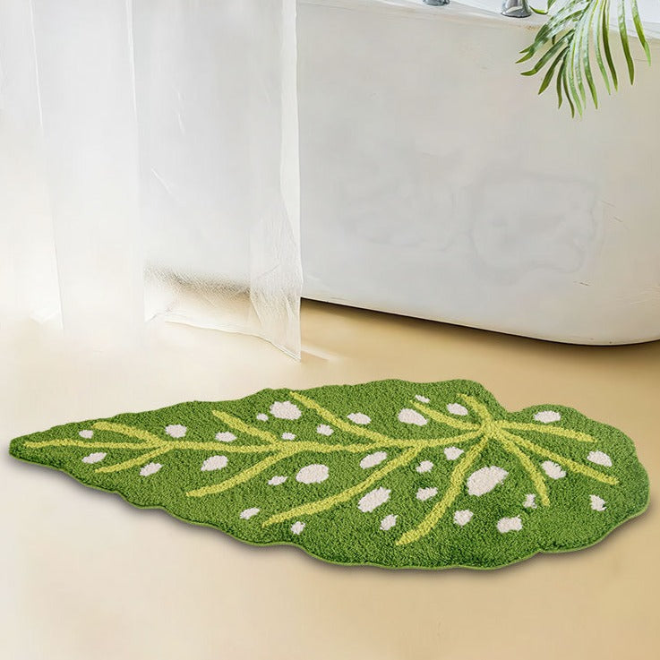 Add a fresh atmosphere to your bathroom with the Feblilac Dark Green Leave Bath Mat.