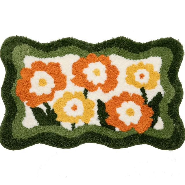This Fluffy Irregular Orange Daisies Print accent rug is our most unique mat made of natural bamboo fiber. Perfect for decorating your soft, art hoe or danish pastel aesthetic room.