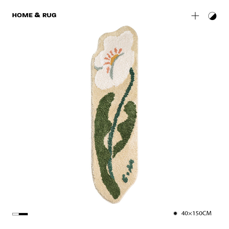 Feblilac Yellow and White Flower Bedroom Mat, 15.7″x59″ Non Slip Bedroom Mat, Floral Floor Mat for Bedroom, Anti Slip Runner, Soft Thick Bedroom Carpet, Art Fluffy Bedroom Mats, Best Gaming room Rugs, Hot Bed Runner Mat, Non Slip Bedroom Rugs