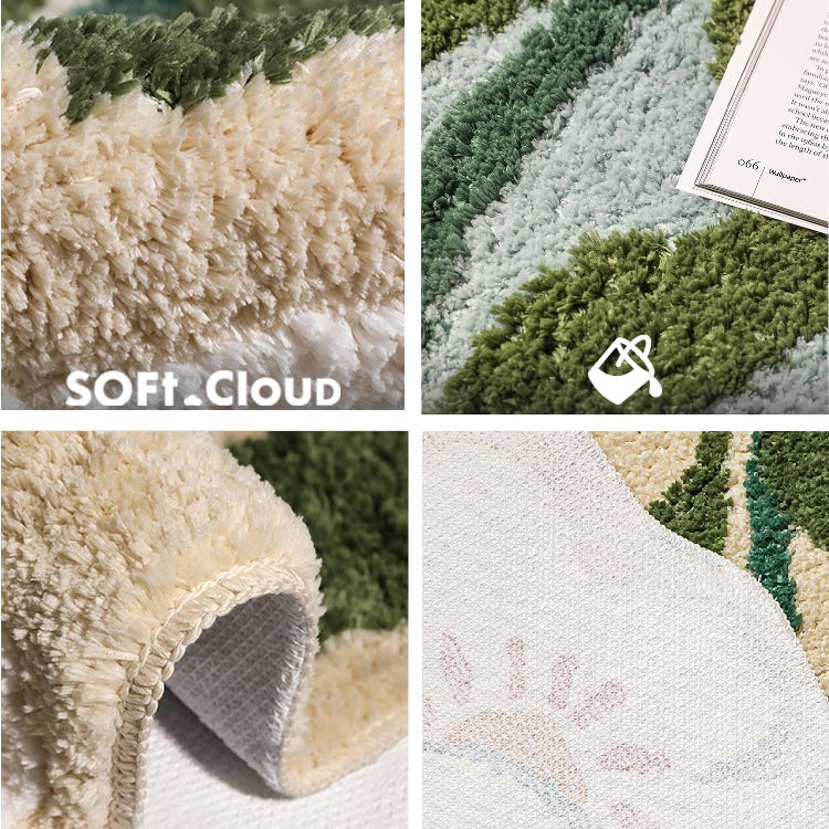 The bath mat is made of heavy-density yarn. Thick and fluffy contact surface offers exceptional comfortable feels to help soothe tired feet, and is super absorbent that helps save your floors from dripping water while you were stepping out of the bath, shower, or getting ready by the sink.