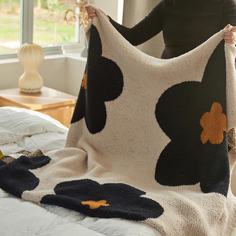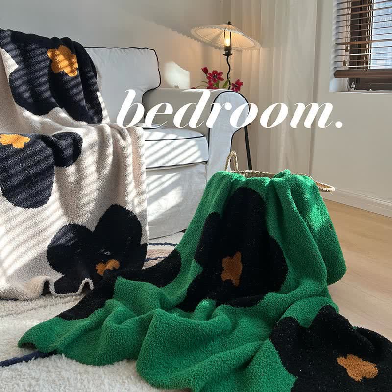 Black Flower Knitted Throw Sofa Blanket - Green / 39" x 55" ist auf Lager und wird versandt, sobald es wieder verfügbar ist