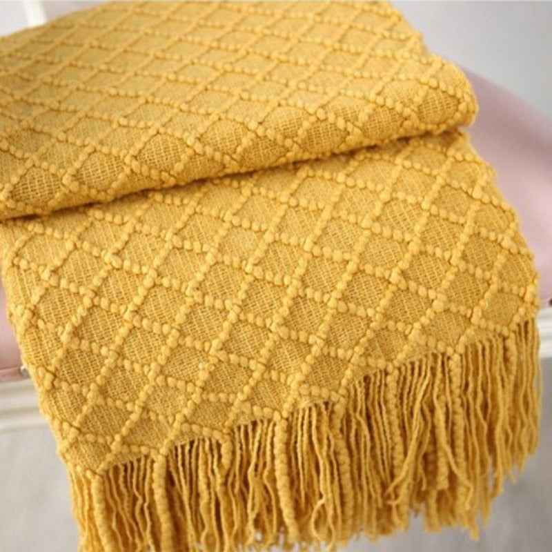Practical, romantic and reminiscent of its namesake stocking, our Fishnet throw features a sophisticated and delicately feminine woven pattern that adds a touch of extravagance to a range of soft spaces. An essential for colorblocking with tone-on-tone texture, this piece offers casual refinement and an alluring drape. Constructed of differently-sized plush acrylic yarns, its trimmed with a unique variegated fringe border that adds visual interest and makes it all feel, we daresay, a little bohemian.