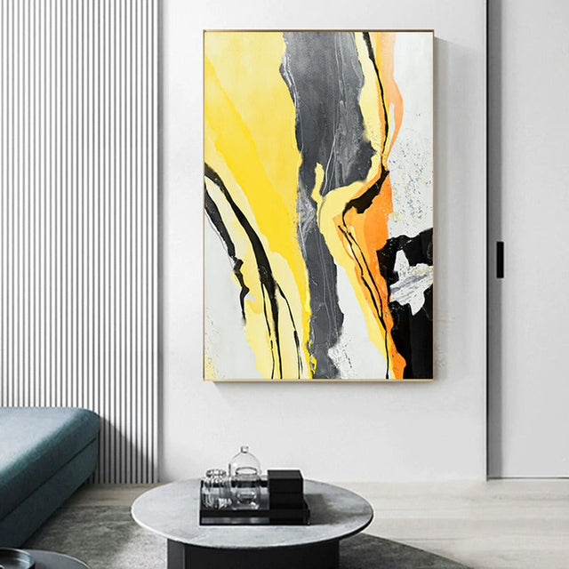 Embrace these vibrant canvas prints in splashes of yellow. The abstract blast of vibrant colors gives each of these prints a dramatic look. Group them together to give any space an art gallery feel.