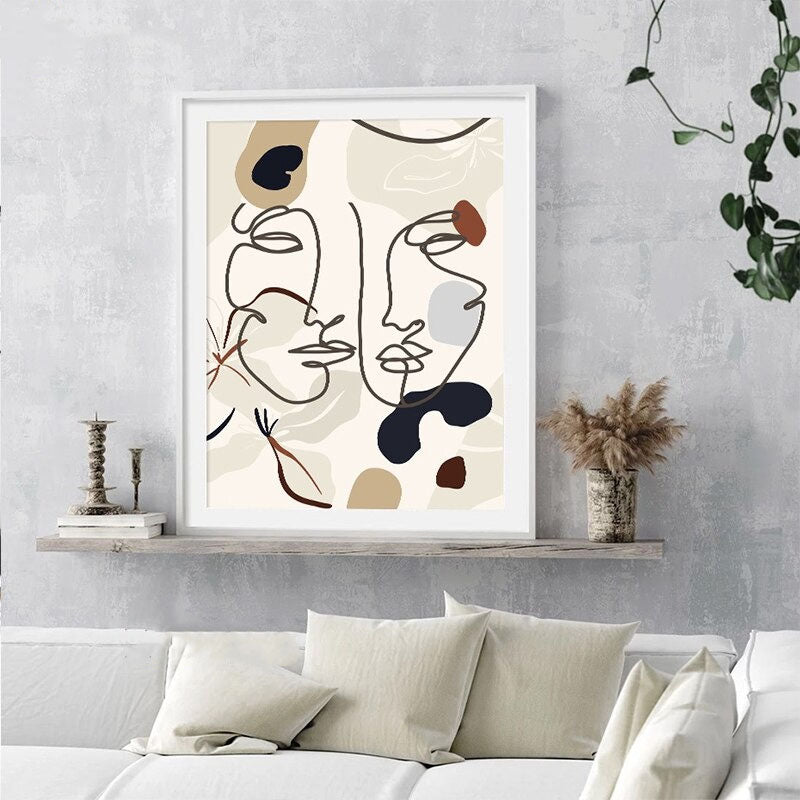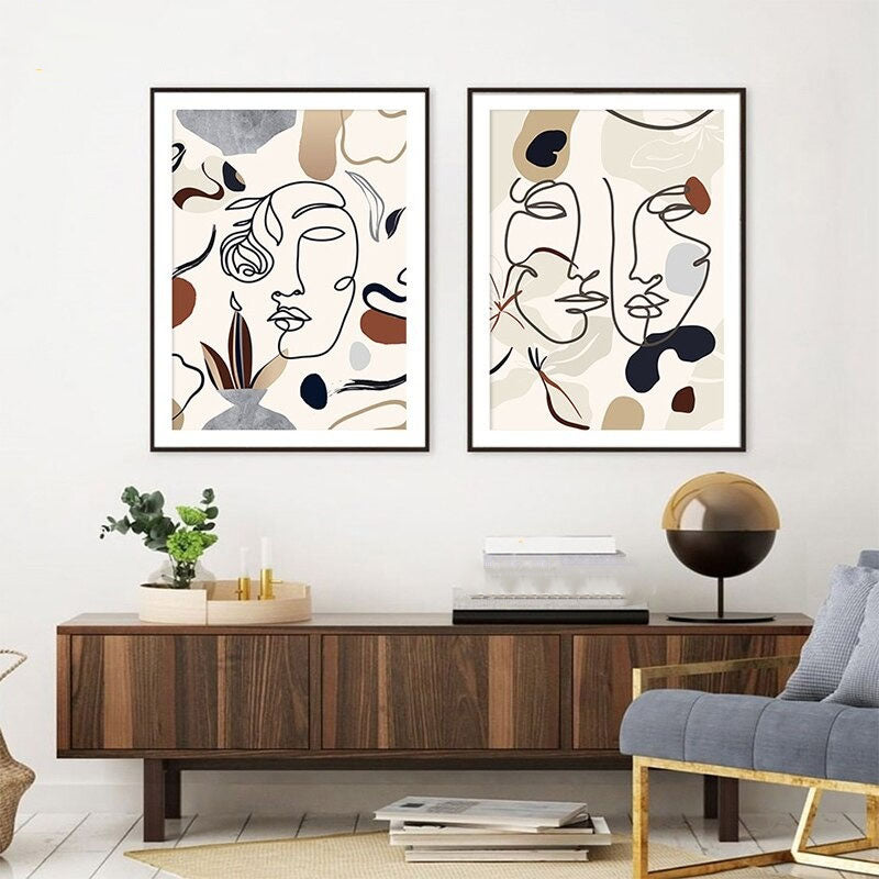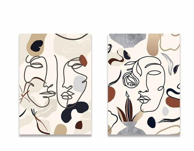 The beauty of the face knows no bounds. These abstract prints turn any empty space into a contemporary display with dramatic abstract prints.  The delicate faces are complemented with muted colors making these linear faces the center of attention. These prints will give any space an art gallery feel.