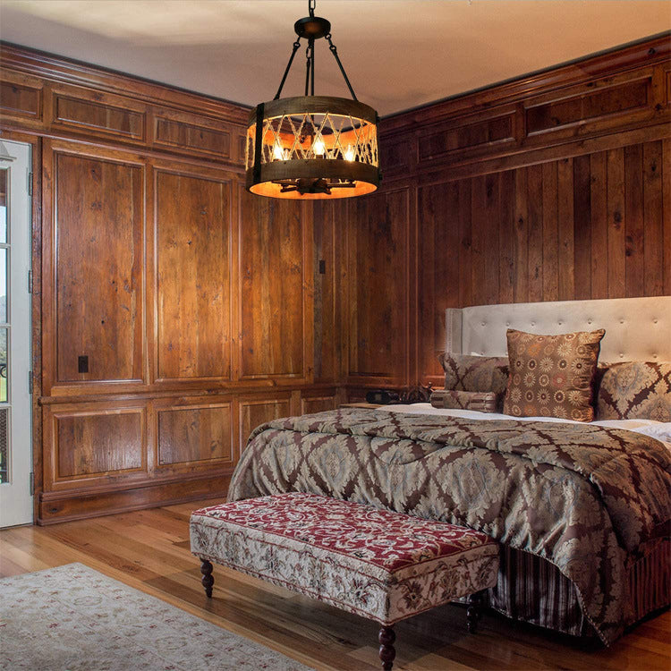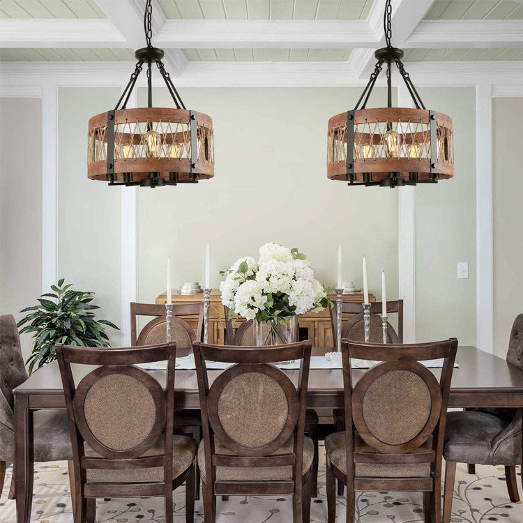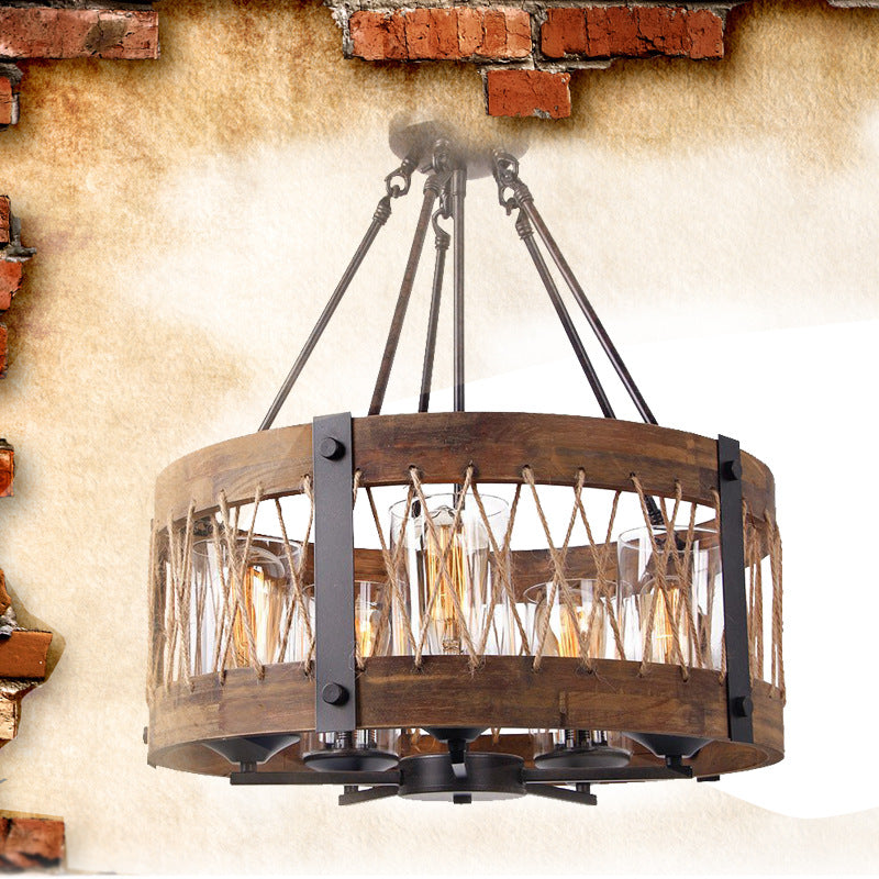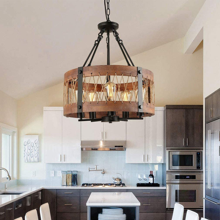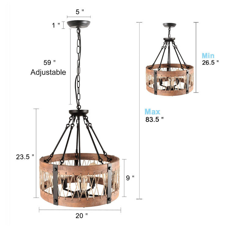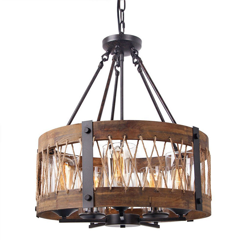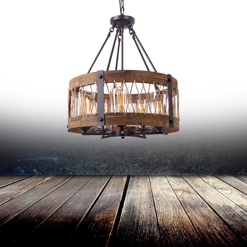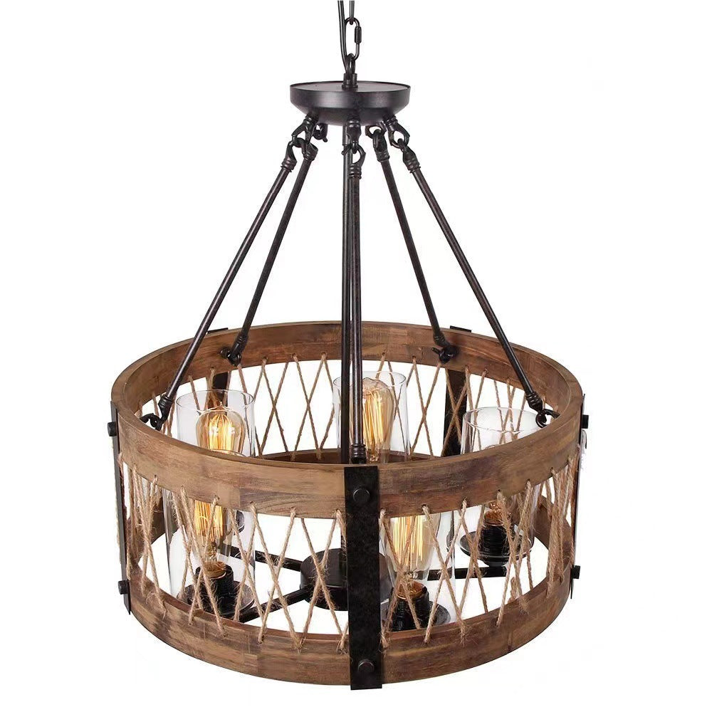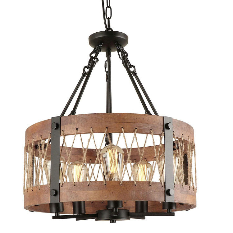 5-Light Wooden Circle Antique Chandelier