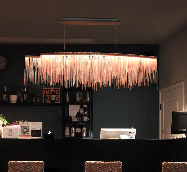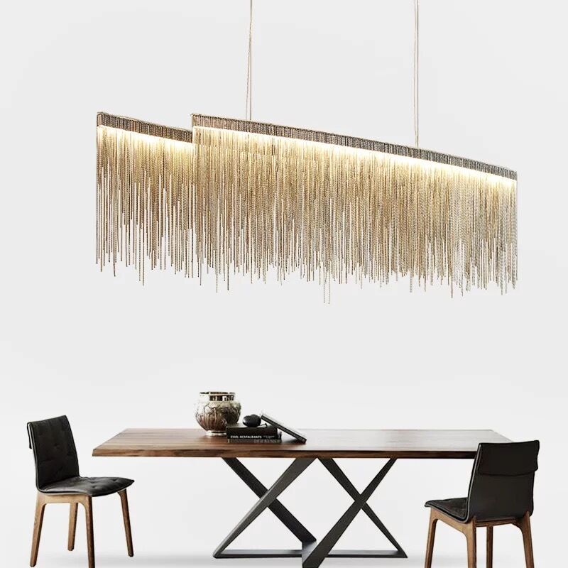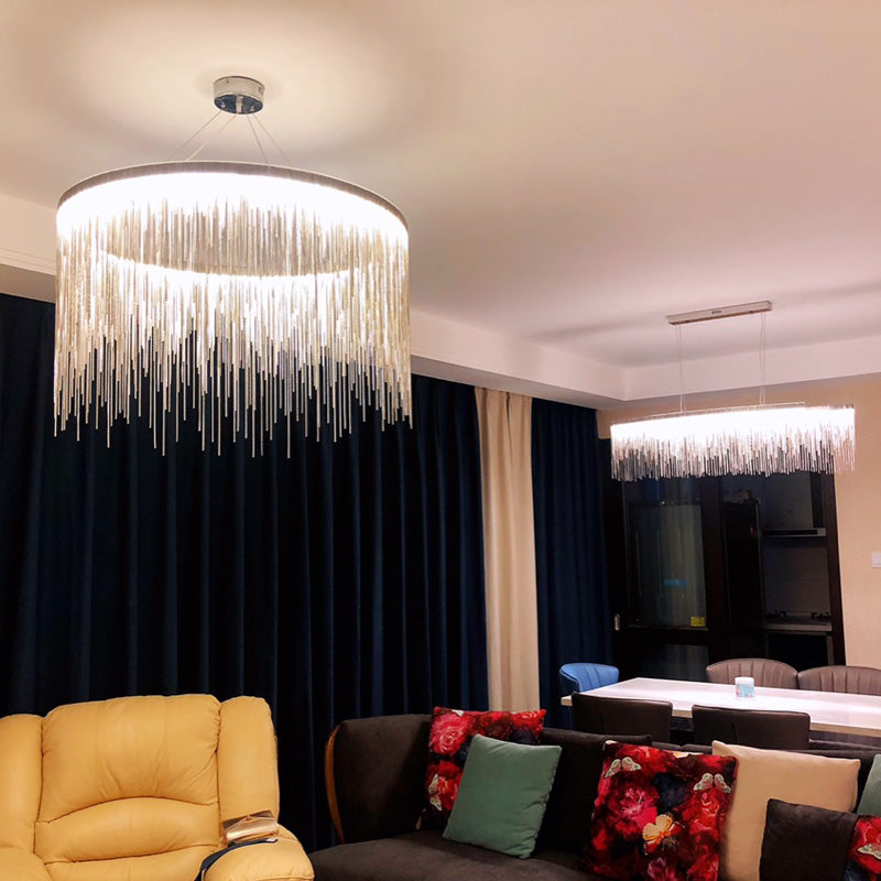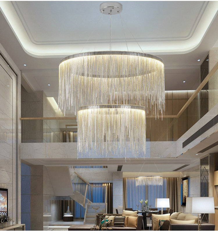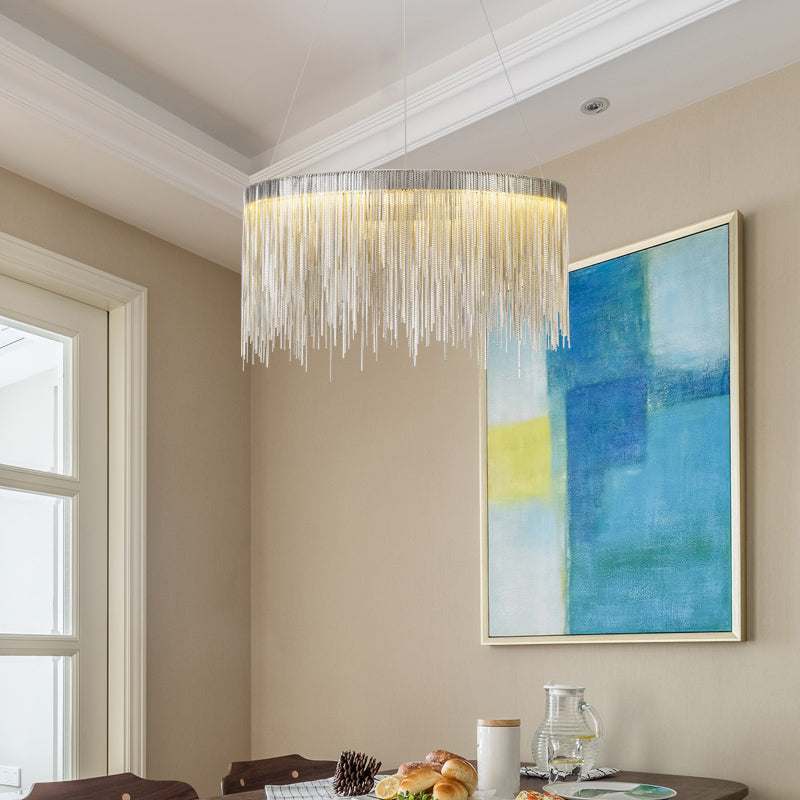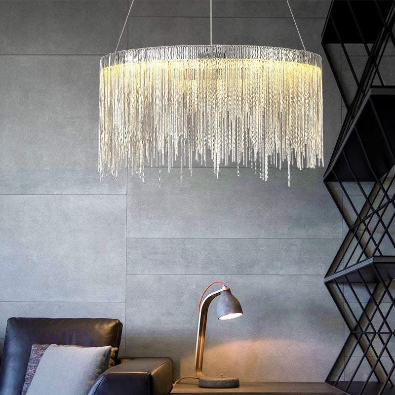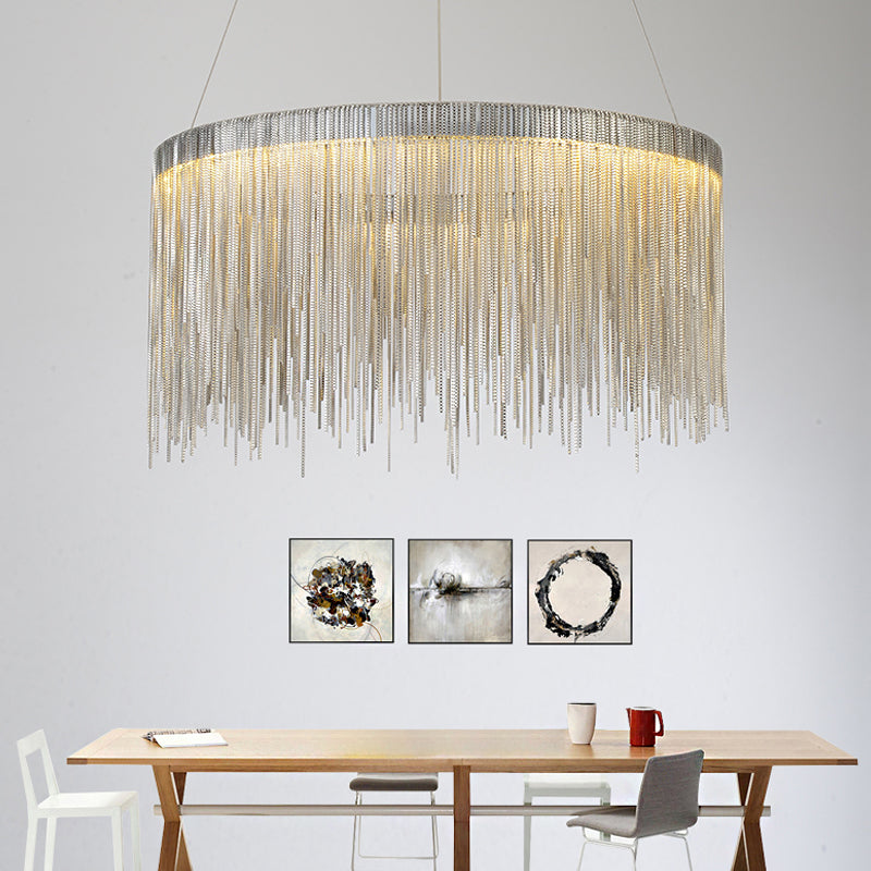 Aluminum chain Stream chandelier - Round Size:Dia 40 cm x H 35 cm/∅ 15.8 in x H 13.8 in / Chrome / 6000K Cool White ist auf Lager und wird versandt, sobald es wieder verfügbar ist