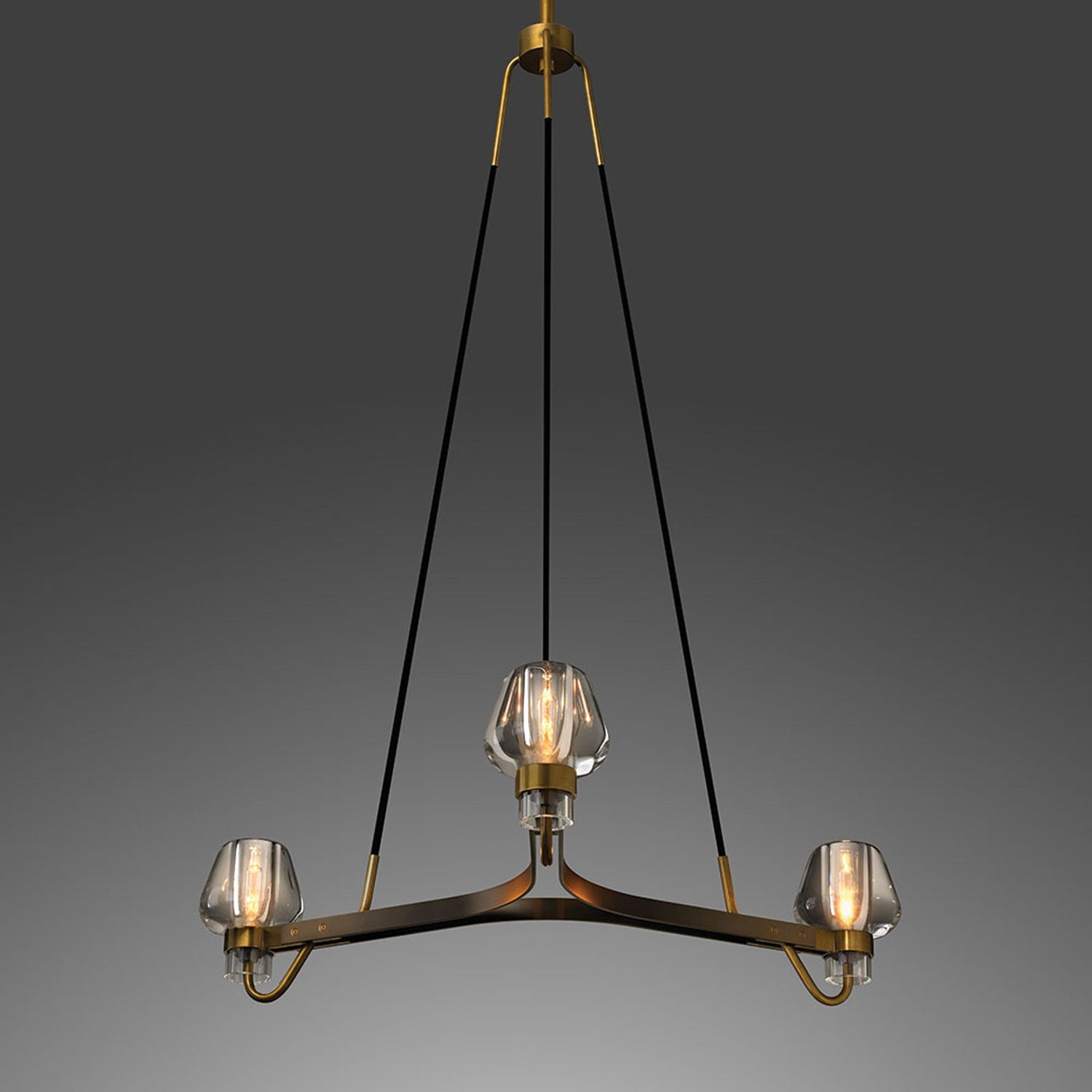 Antique Brass Glass Chandelier - 3 heads ist auf Lager und wird versandt, sobald es wieder verfügbar ist
