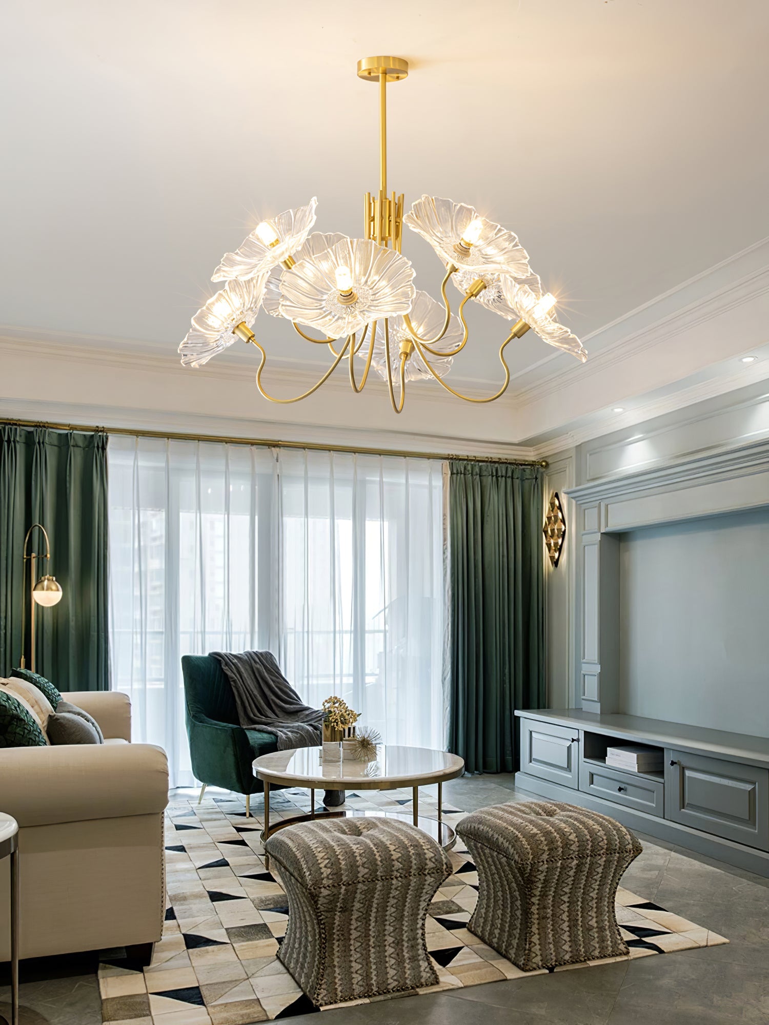 Lotus Leaf Glass Chandelier - 3 heads / Gold+Clear ist auf Lager und wird versandt, sobald es wieder verfügbar ist