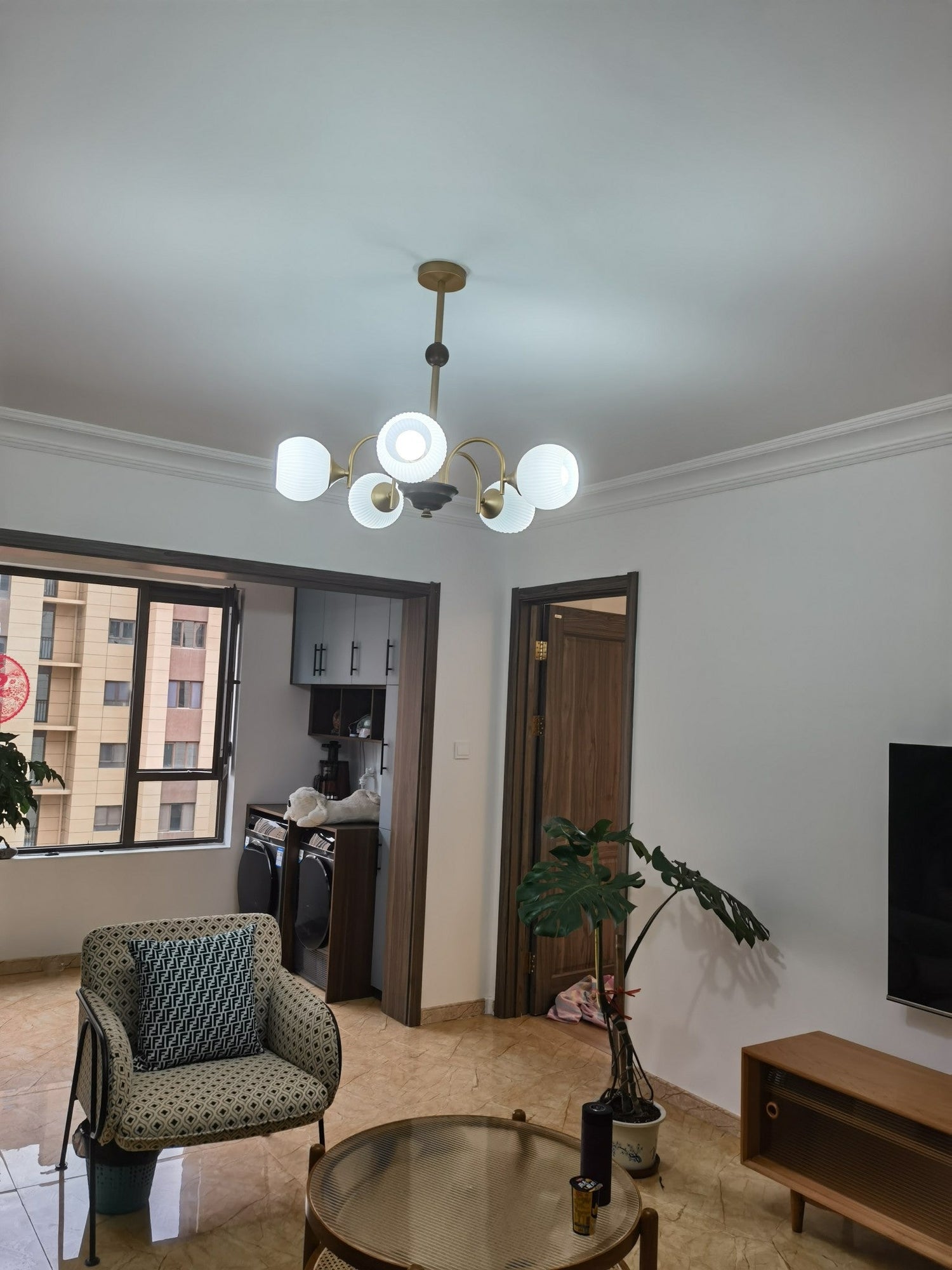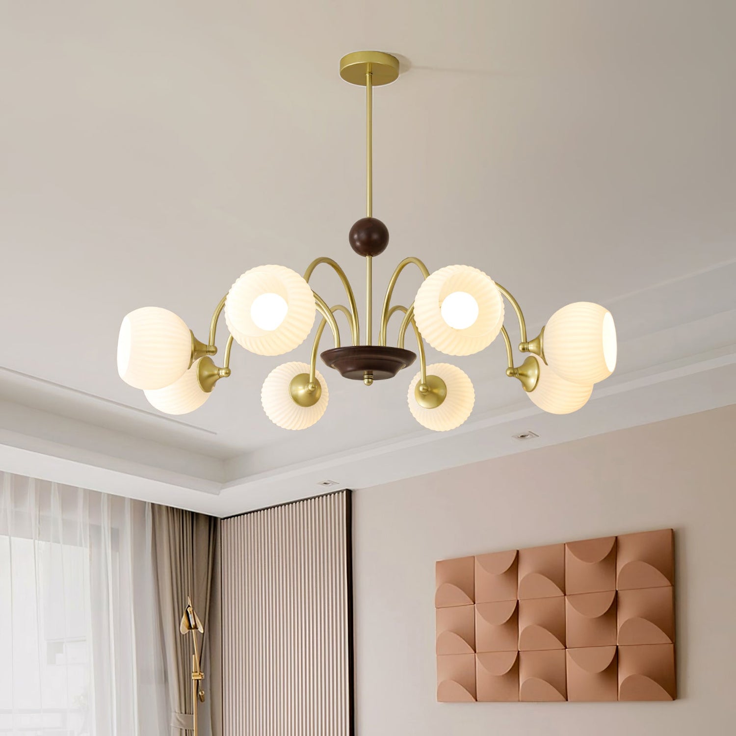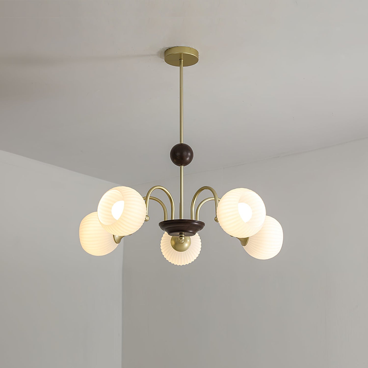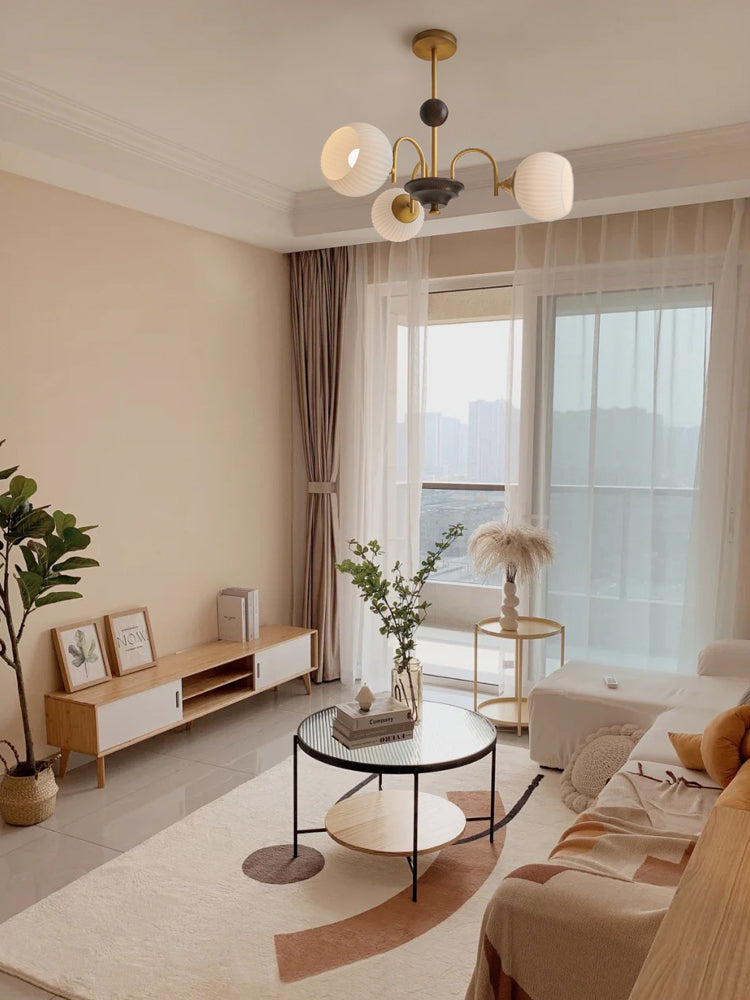 Sculptural Glass Ribbed Chandelier