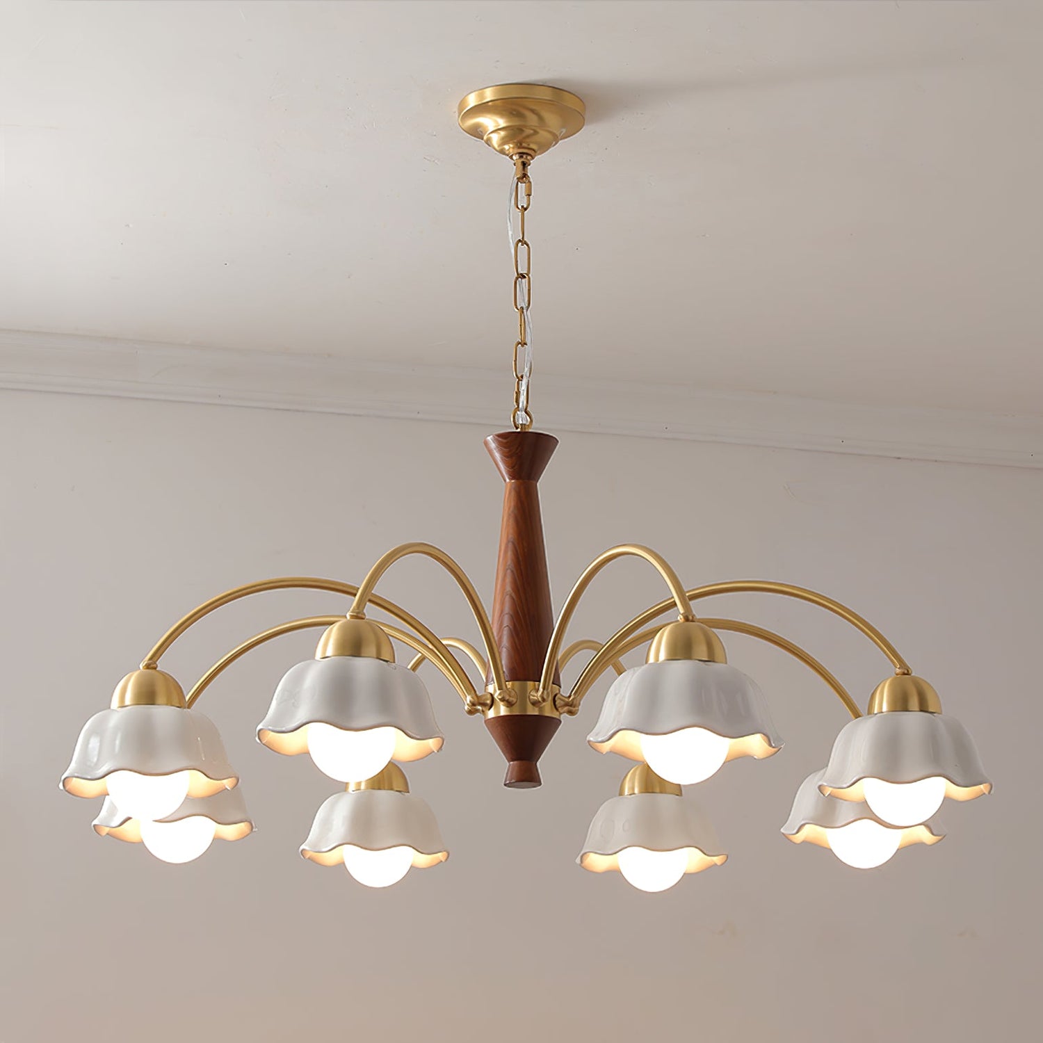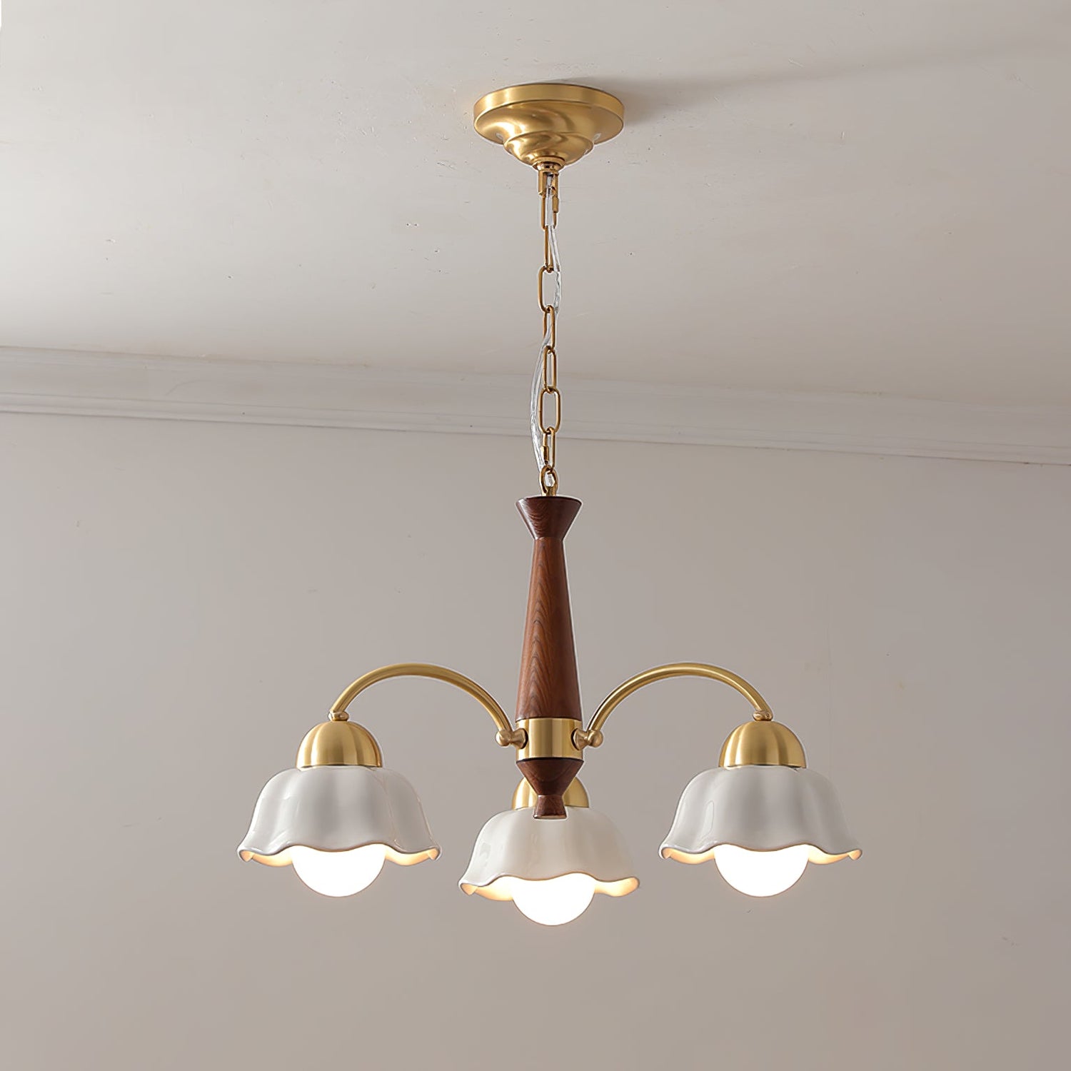 Swedish Modern Brass Chandelier - 3 heads / Gold & Walnut wood ist auf Lager und wird versandt, sobald es wieder verfügbar ist