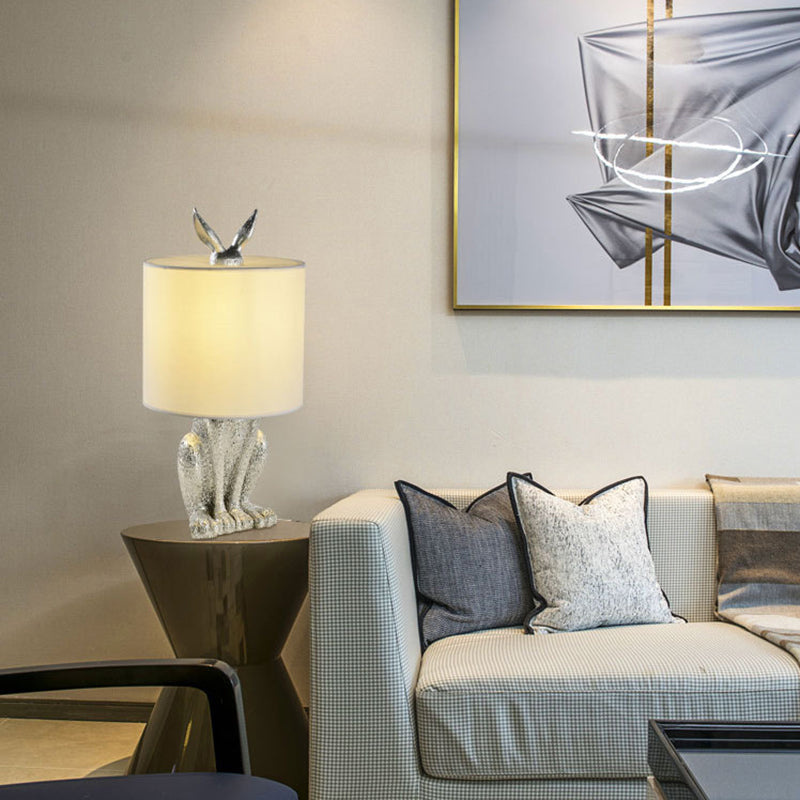 Masked Rabbit Nightstand Lamp Decorative Resin Single Bedside Table Light with Cylinder Fabric Shade