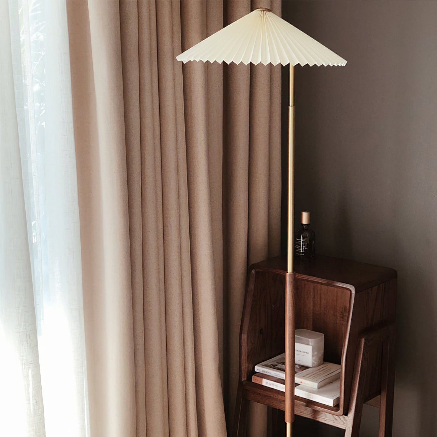 Walnut Brass Floor Lamp