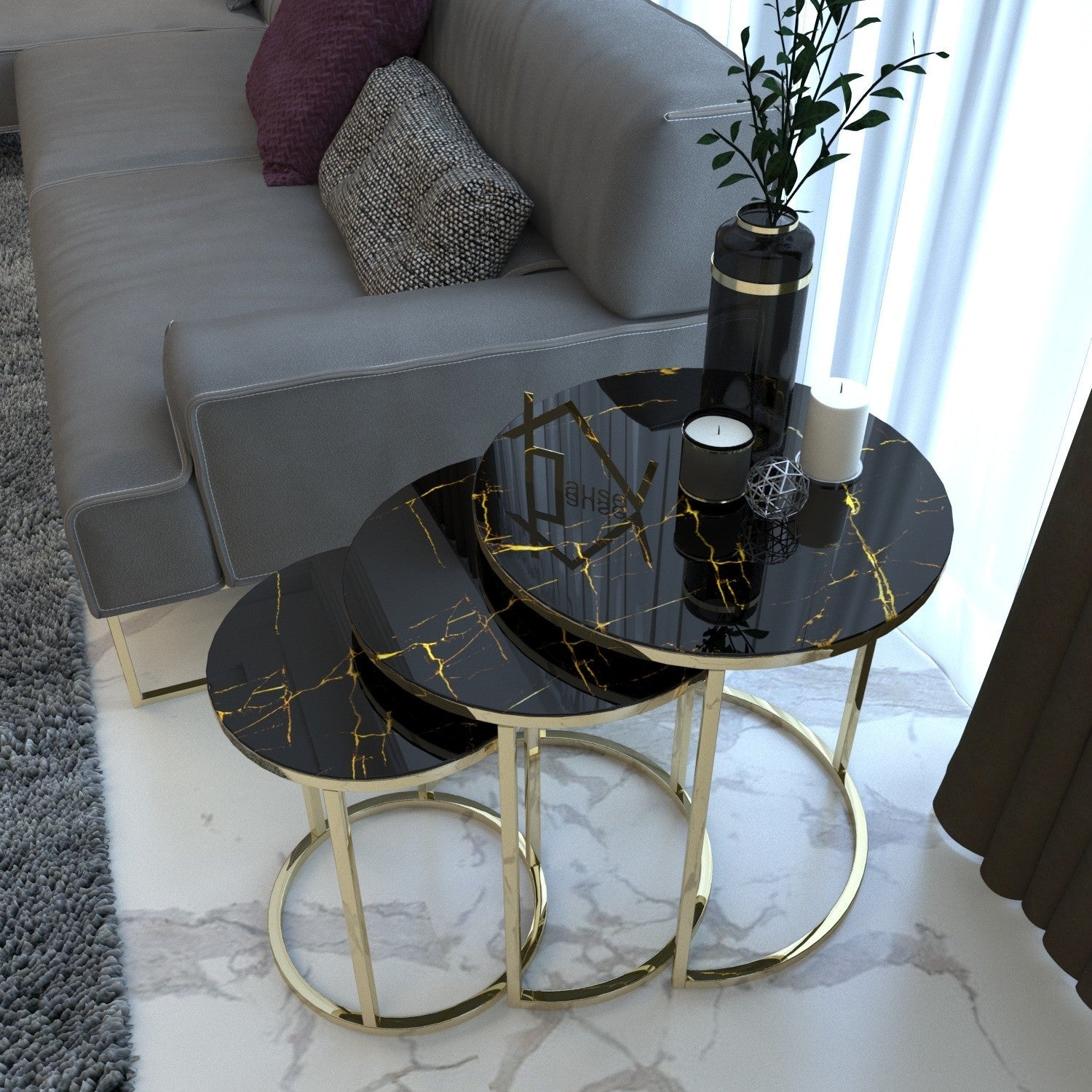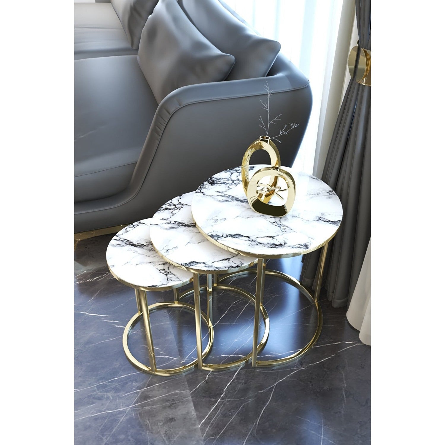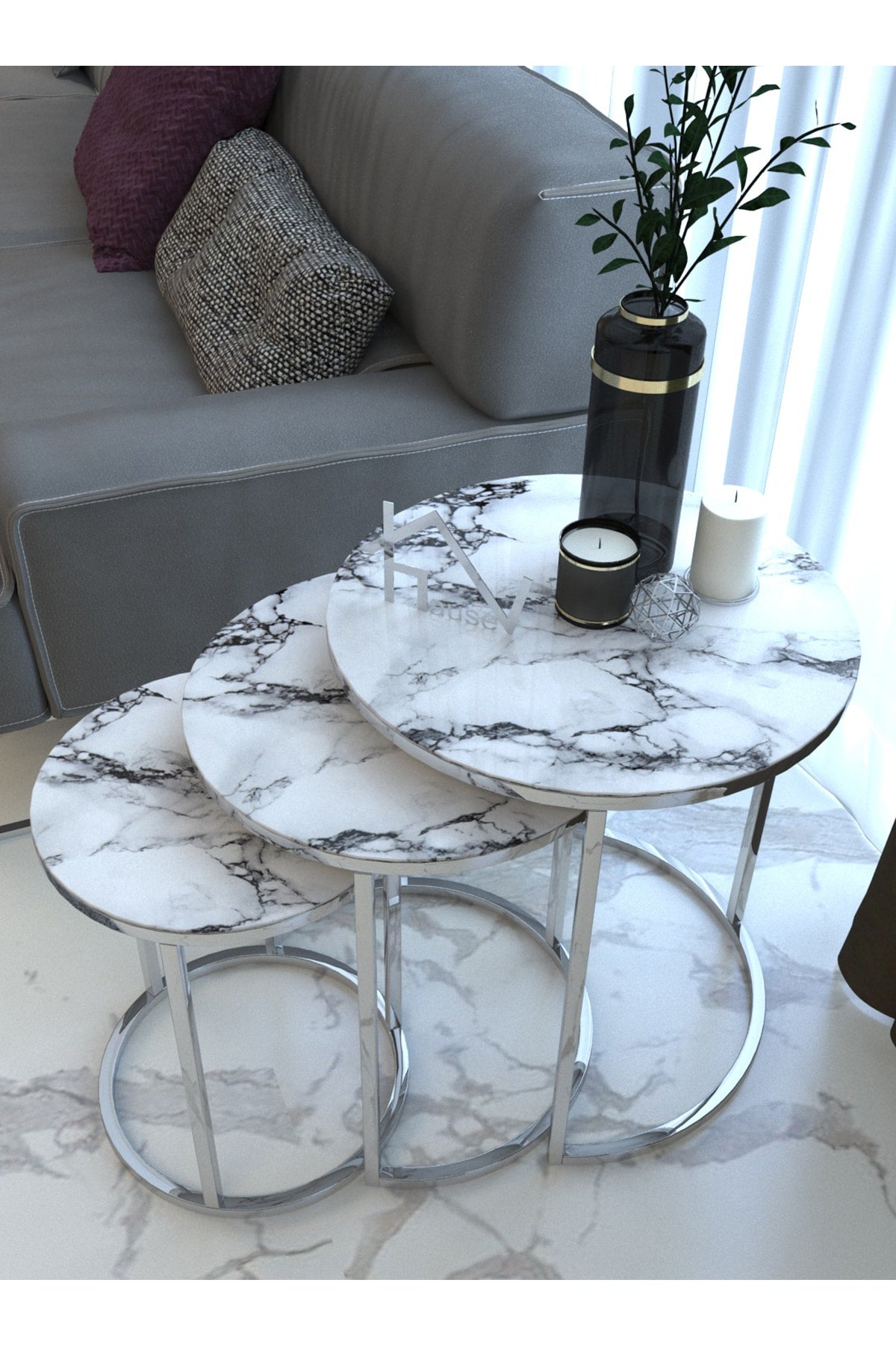 Silver White Marble Glass Coffee Tables (3pcs) - white ist auf Lager und wird versandt, sobald es wieder verfügbar ist