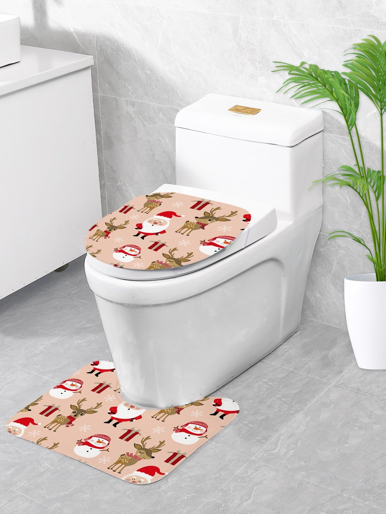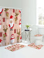 4pc Christmas Elk & Santa Claus Pattern Bath Rug And Shower Curtain