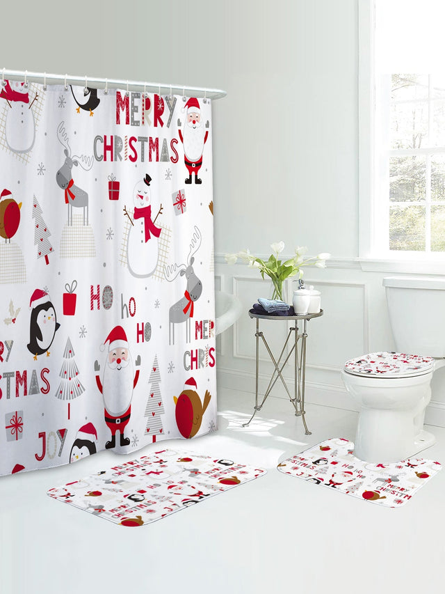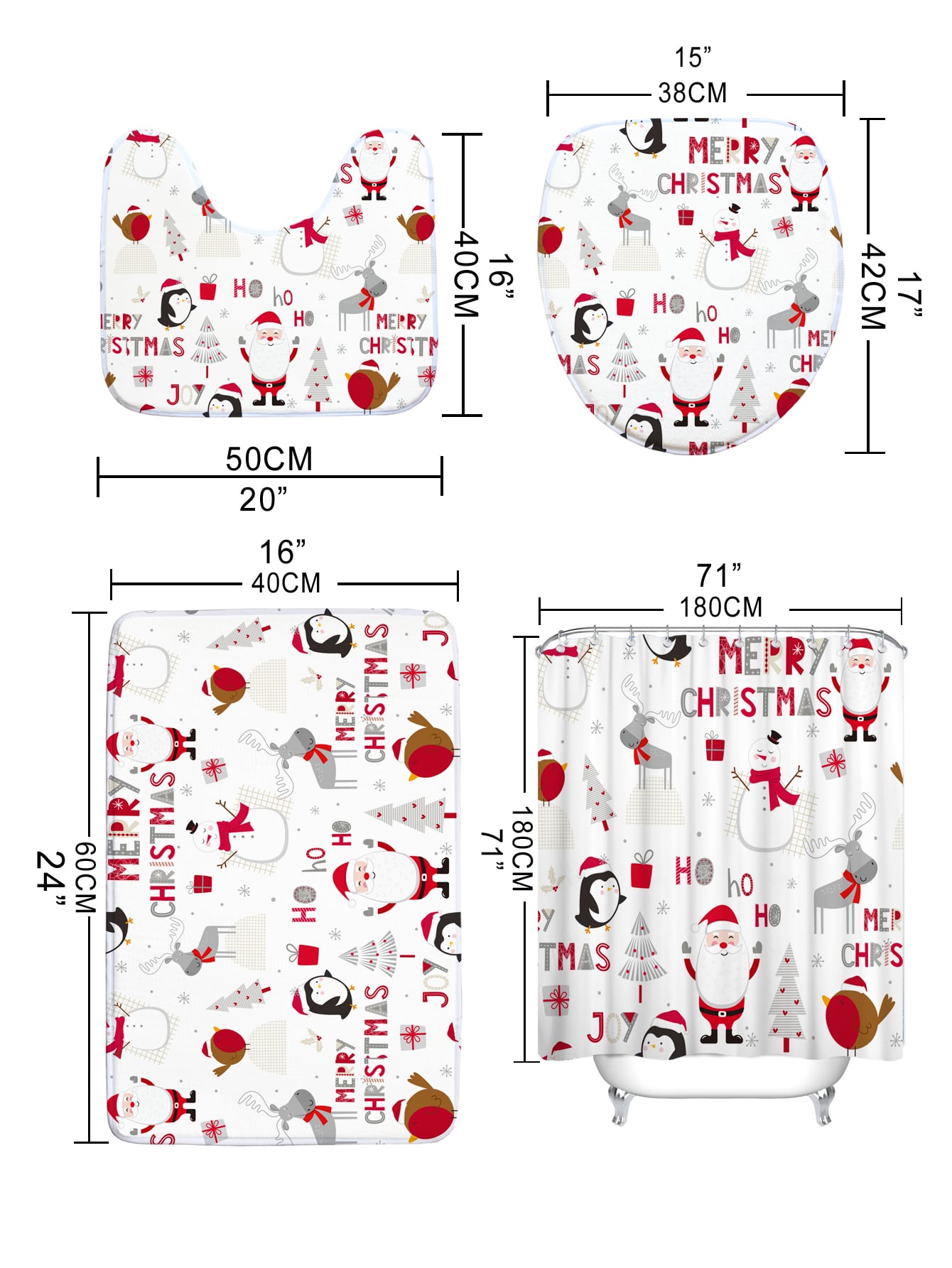 4pc Christmas Print Bath Rug And Shower Curtain ist auf Lager und wird versandt, sobald es wieder verfügbar ist